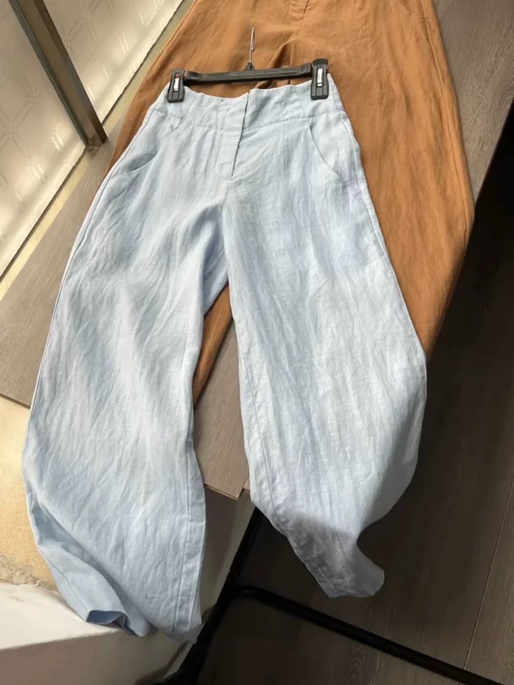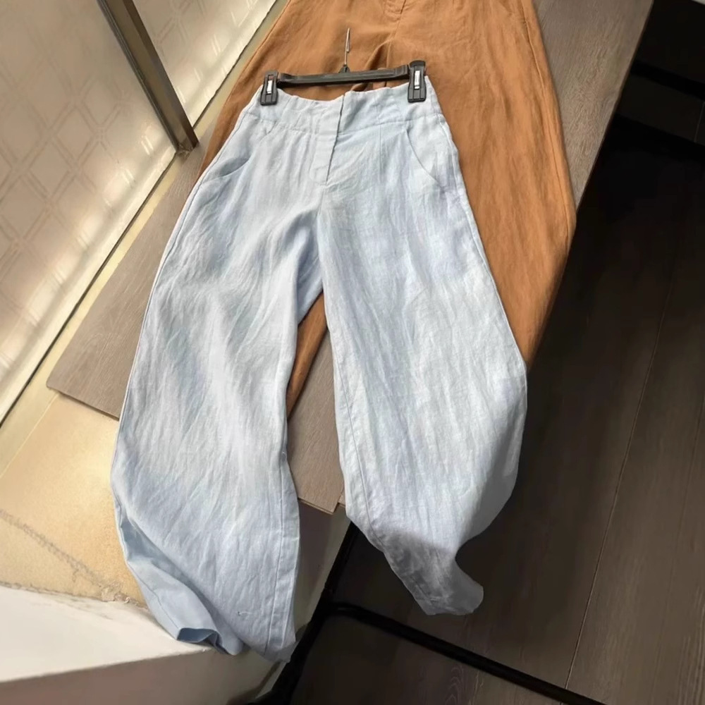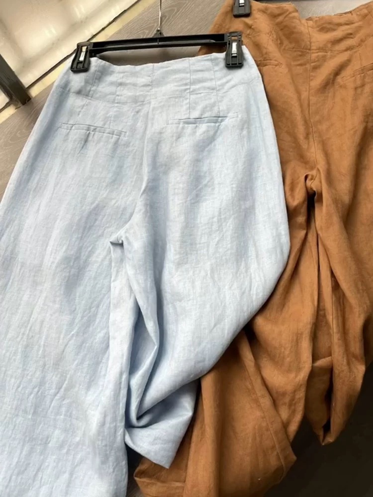 CHAO级推荐!非常有质感!夏季薄款显瘦纯亚麻高腰阔腿直筒裤子女