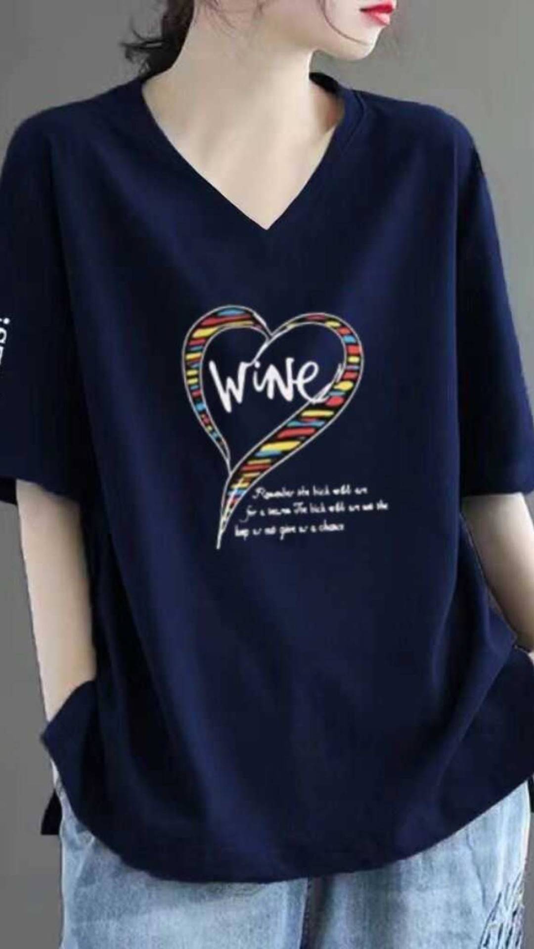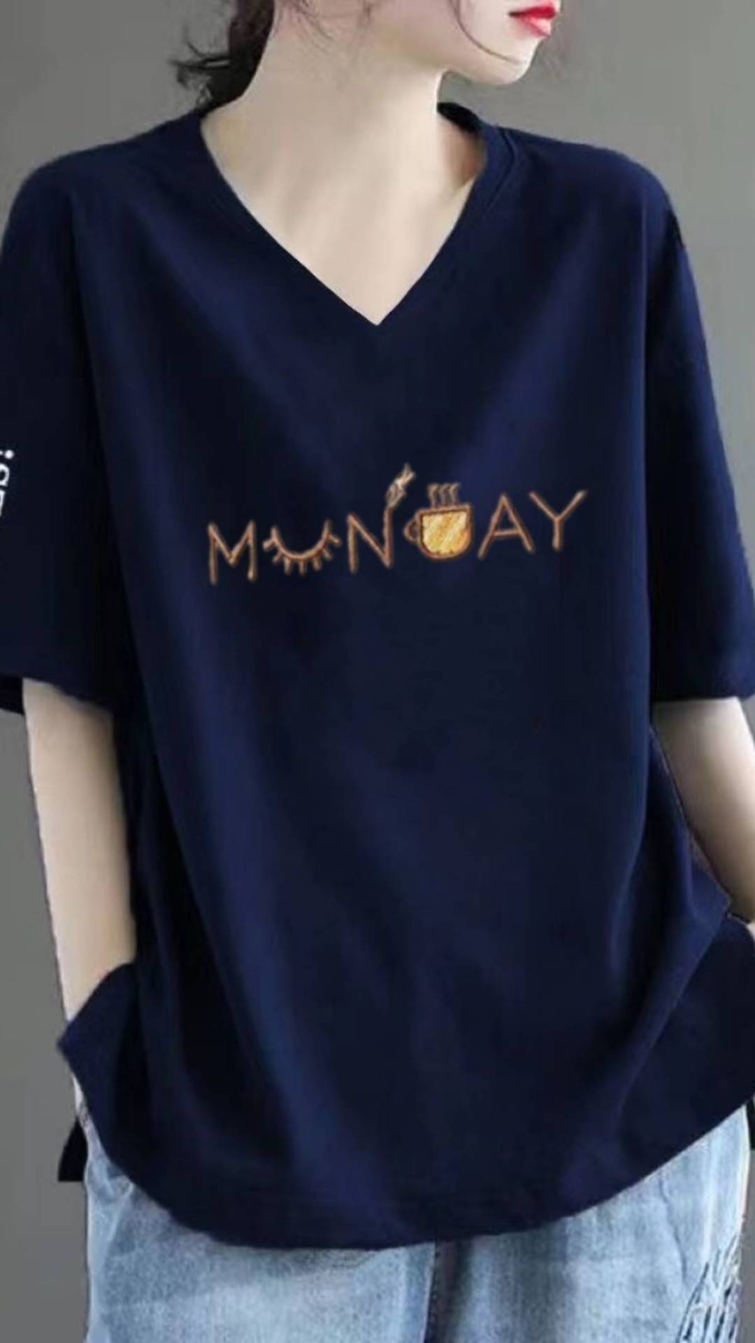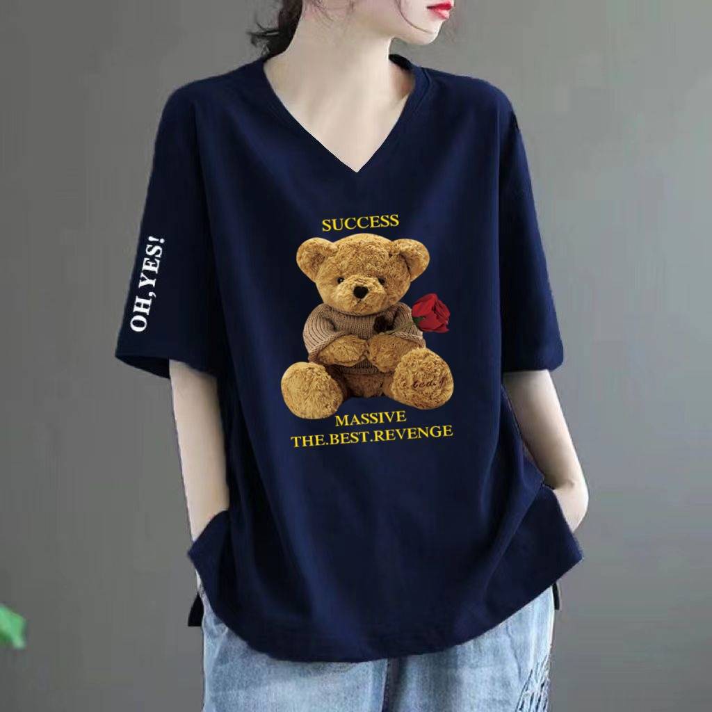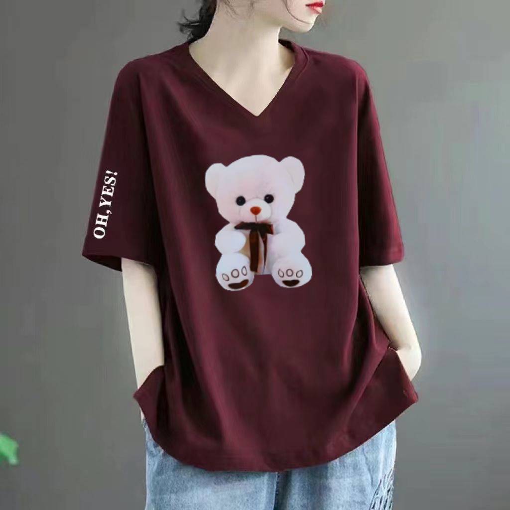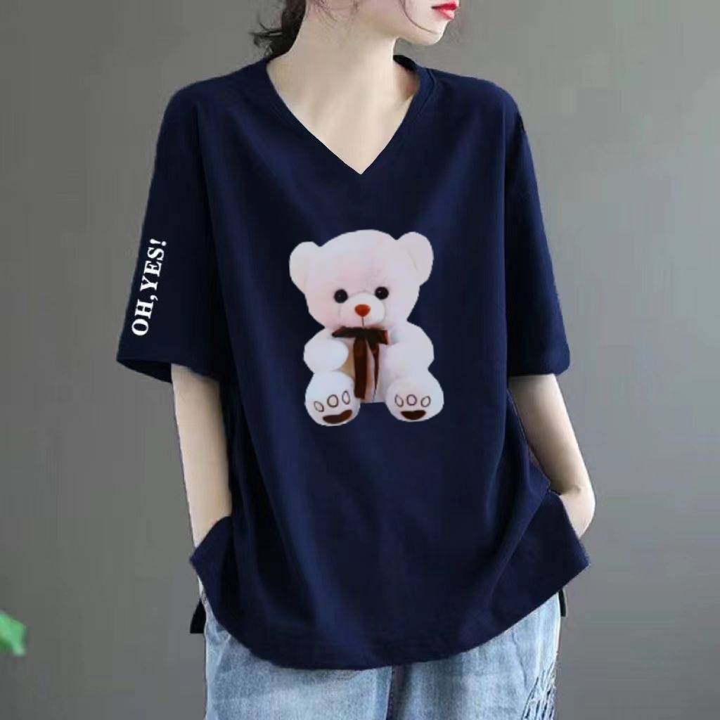 여성용 반팔 티셔츠, 브이넥 여름 신작 루즈한 대형 사이즈 배를 커버하고 슬림해 보이는 패셔너블한 프린트 티셔츠 탑스토어 가기