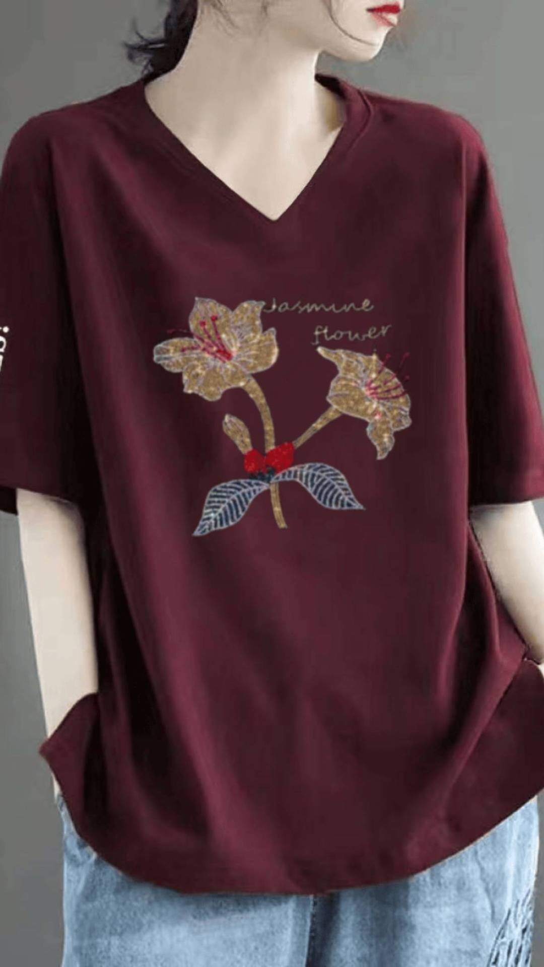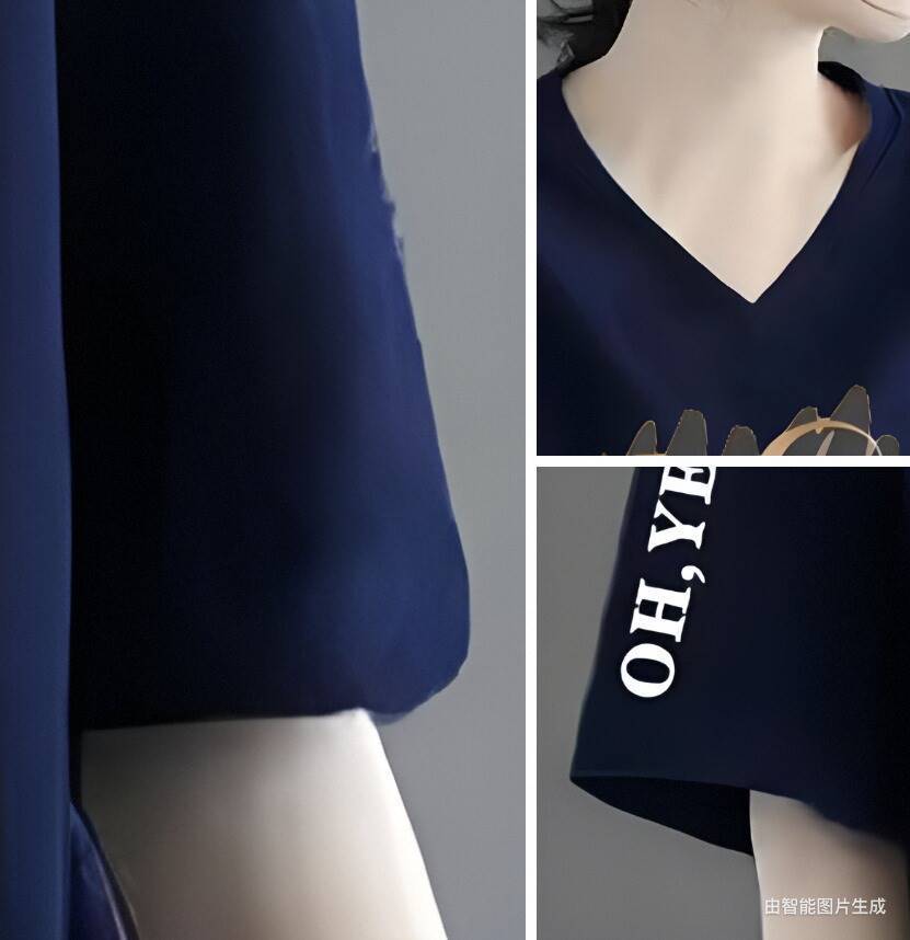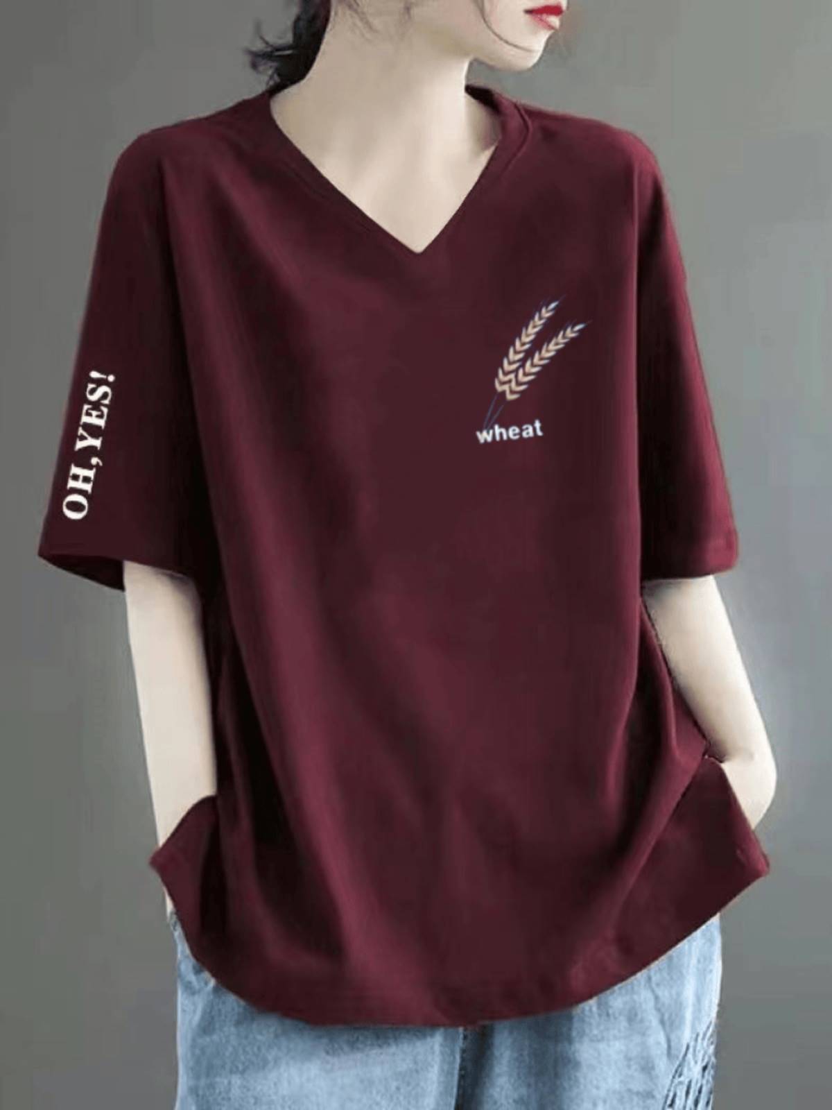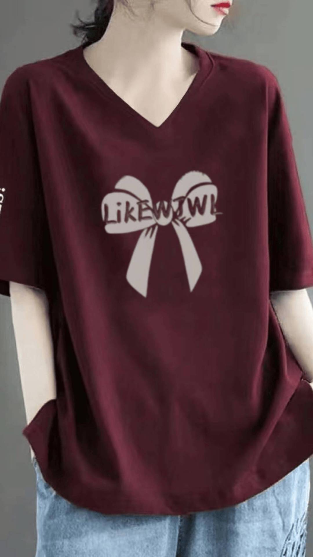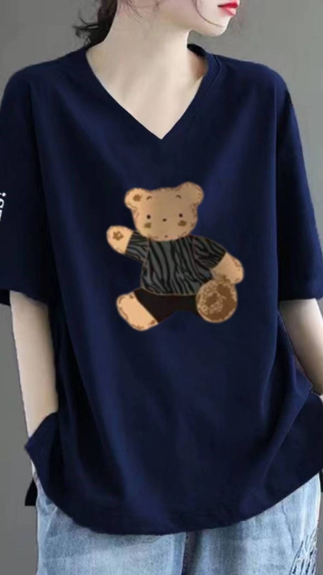 여성용 반팔 티셔츠, 브이넥 여름 신작 루즈한 대형 사이즈 배를 커버하고 슬림해 보이는 패셔너블한 프린트 티셔츠 탑스토어 가기