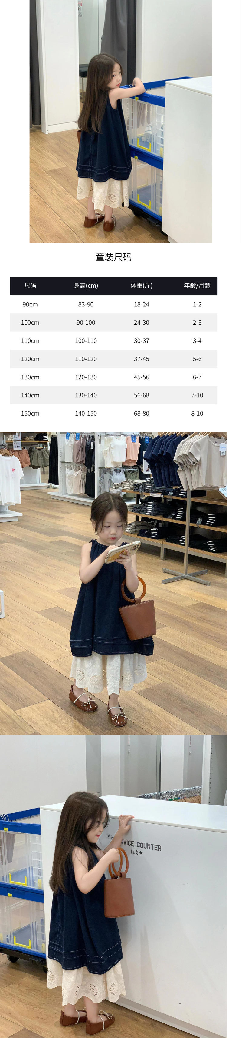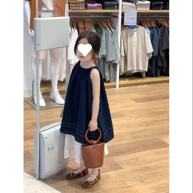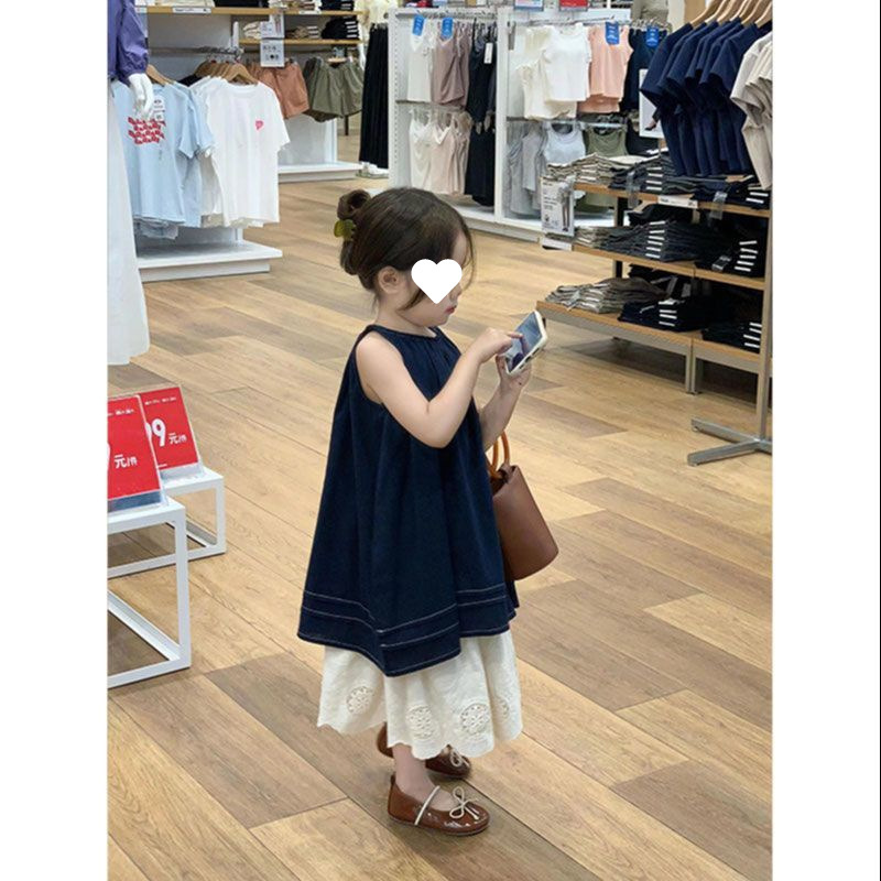 한국 스타일 소녀 여름 유행 원피스 세트 2025 아동복 어린이 서양식 레트로 조끼 스커트 하프 길이 스커트스토어 가기