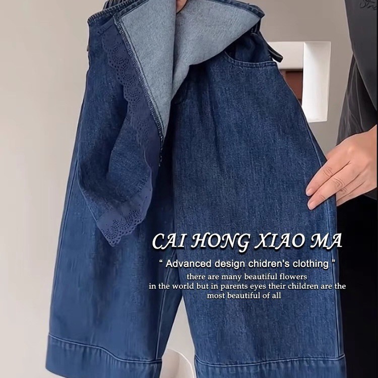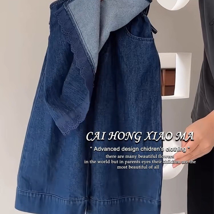 한국 아동복 가을 의류 소녀 세트 유행 디자인 짧은 최고 서양식 레이스 앞치마 어린이 청바지