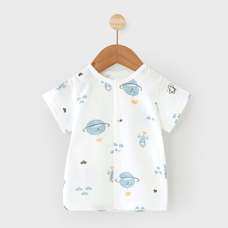 여름 얇은 코튼 아기 반팔 티셔츠 아기 잠옷 카디건 탑 뼈없는 베이스 셔츠 만화 아이들스토어 가기