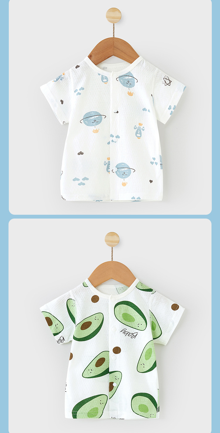 여름 얇은 코튼 아기 반팔 티셔츠 아기 잠옷 카디건 탑 뼈없는 베이스 셔츠 만화 아이들