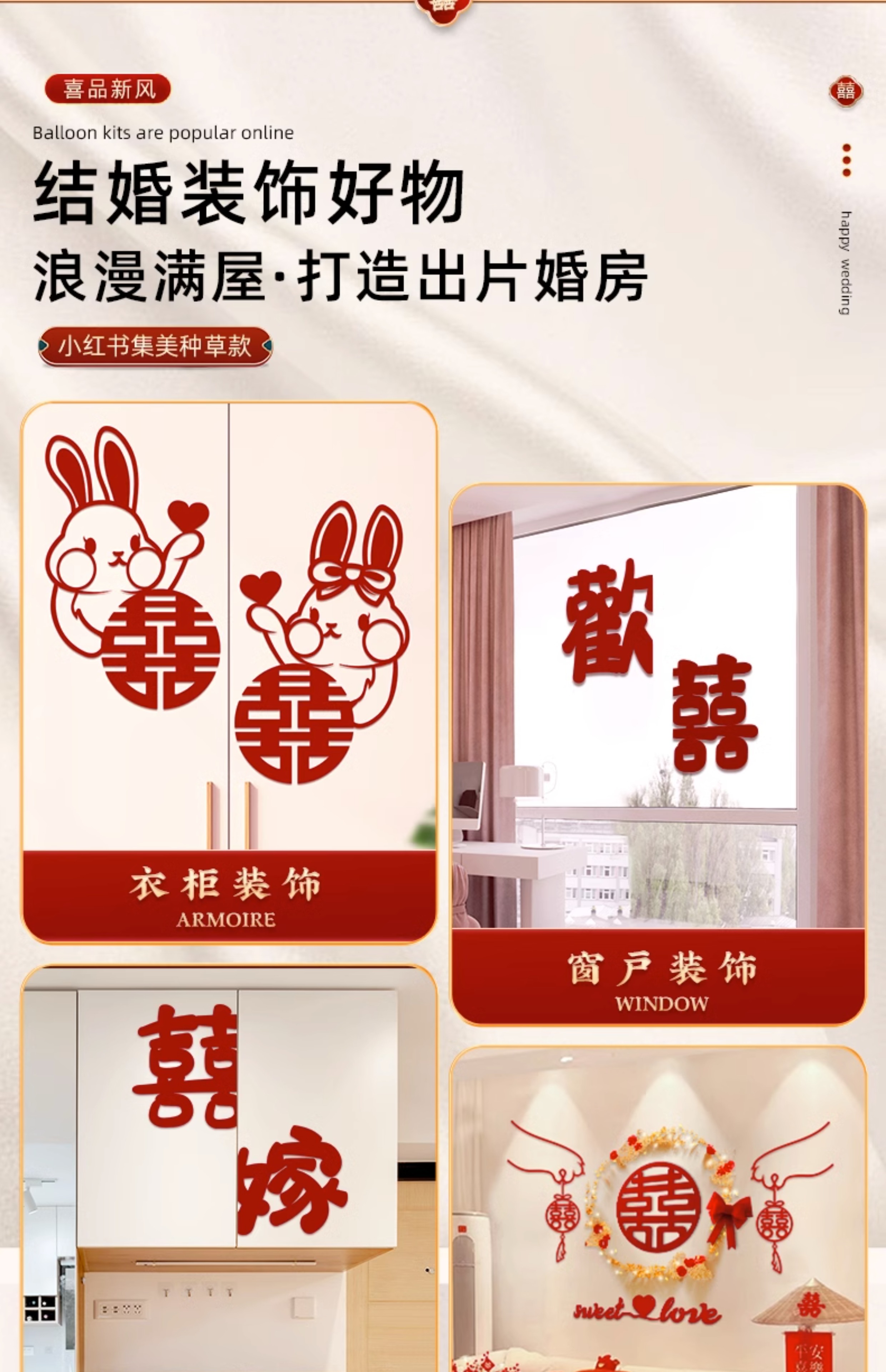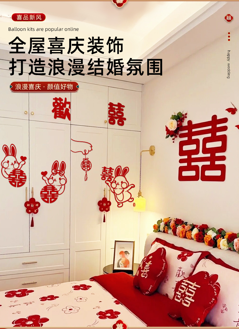냉장고 웨딩 룸 레이아웃 해피 캐릭터 스티커 마스터 침실 창 해피 캐릭터 옷장 웨딩 뉴 하우스 장식 룸 침실