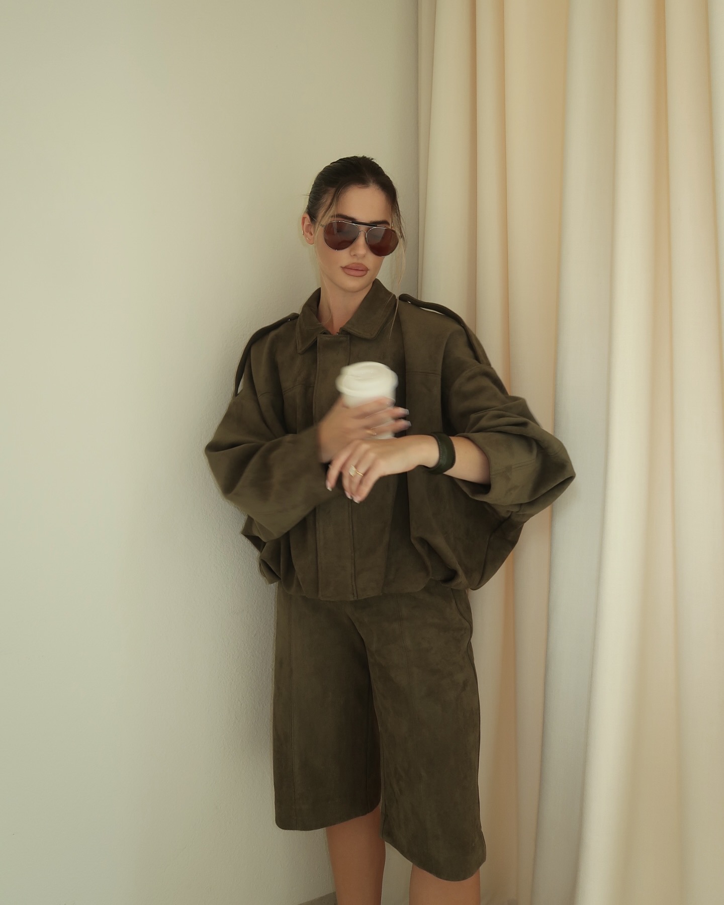 그린 스웨이드 폭격기 재킷 코트 2025 봄 AliExpress 폭발성 코트 탑