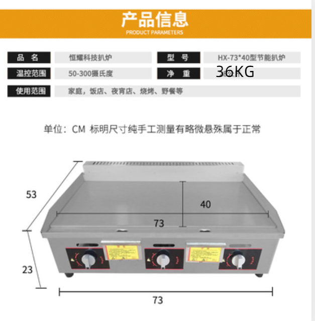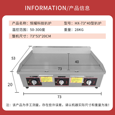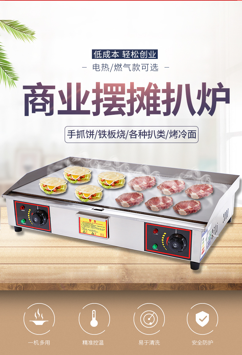 상업용 그릴 가스 대형 철판 가키 장비 철 오징어 구운 차가운 국수 기계 가스 핸드 헬드 케이크 기계스토어 가기