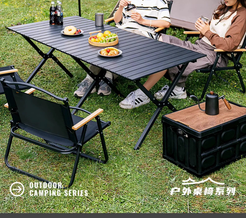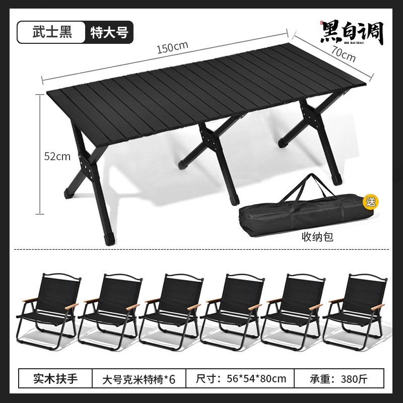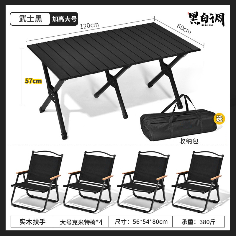 야외 접이식 의자와 테이블, 조절 가능한 탄소강 합금 에그롤 테이블, 휴대용 블랙 캠핑 피크닉 풀 세트 장비