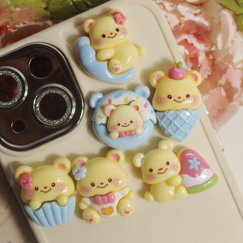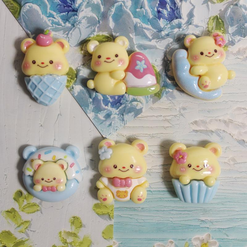 만화 귀여운 수지 곰 빵 비스킷 DIY 액세서리 크림 젤 전화 케이스 헤어핀 로프 워터 컵 액세서리