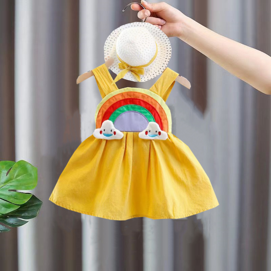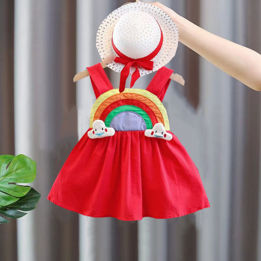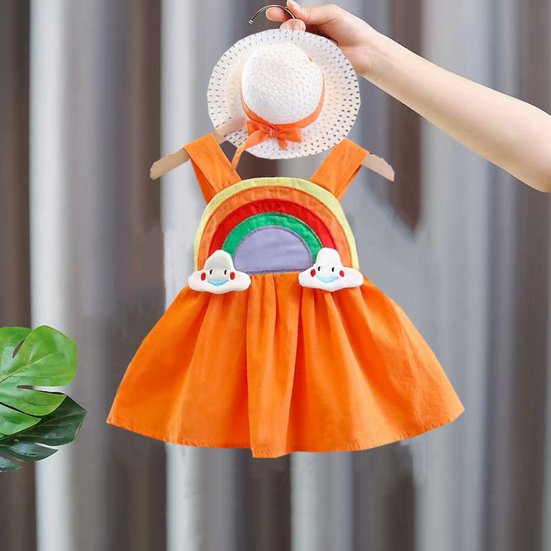 Zhili 여름 새로운 소녀 무지개 스트랩 밀짚 모자 스커트 소녀 아기 스트랩 원피스 대외 무역 비치 스커트스토어 가기