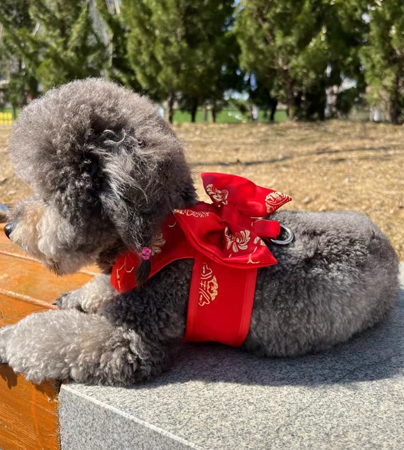 걷는 개 걷는 고양이 밧줄 강아지 옷 테디 축제 결혼식 원피스 개 견인 밧줄 애완 동물 동행하는 탕 원피스 레드