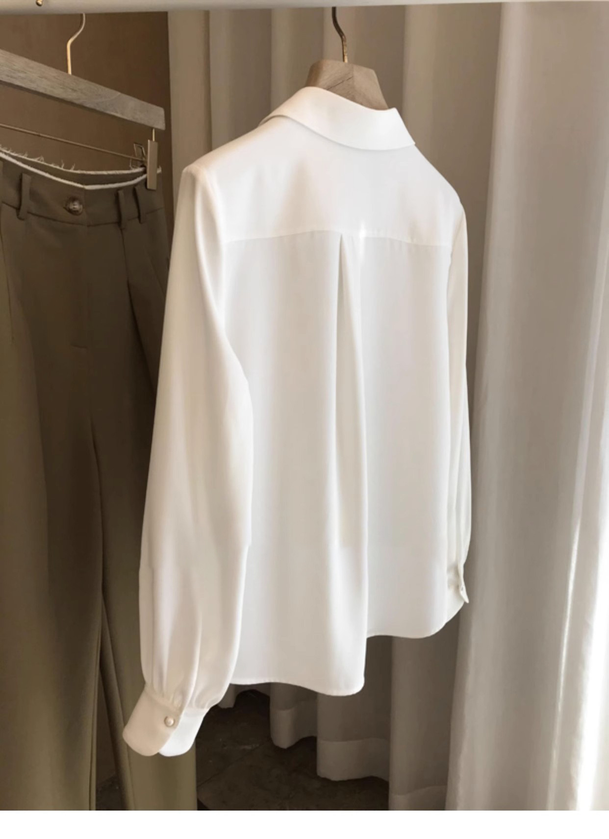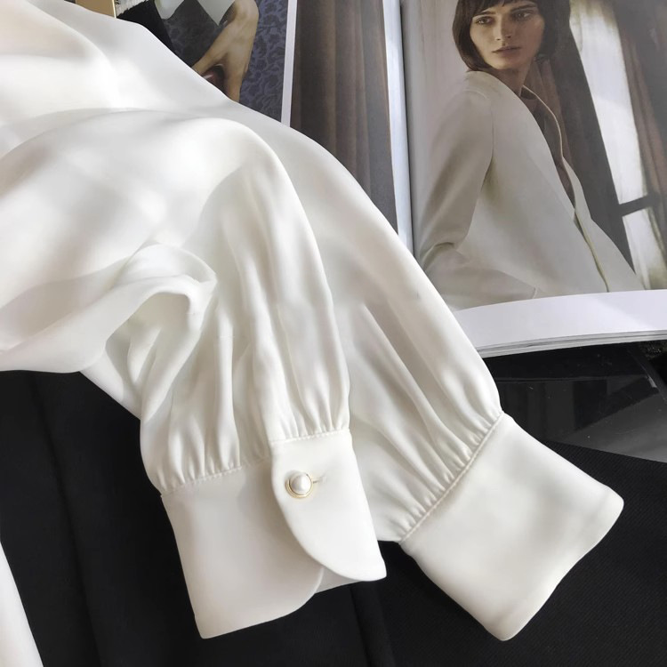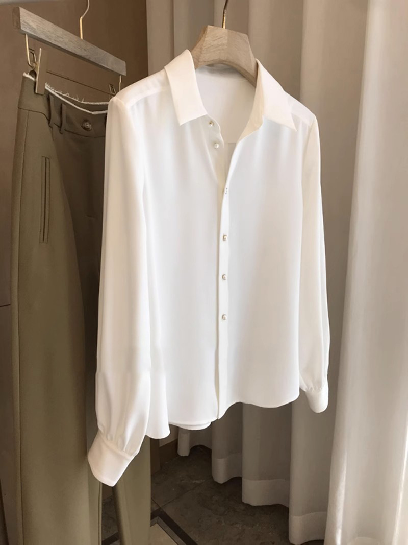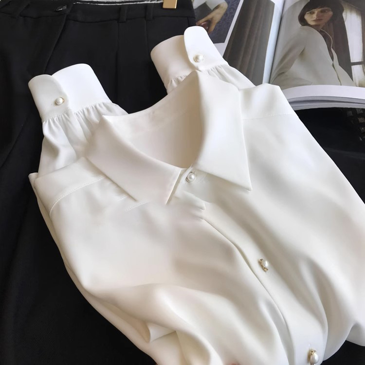 2024新款珠扣长袖衬衫上衣女春季春装宽松型透气复古时尚百搭