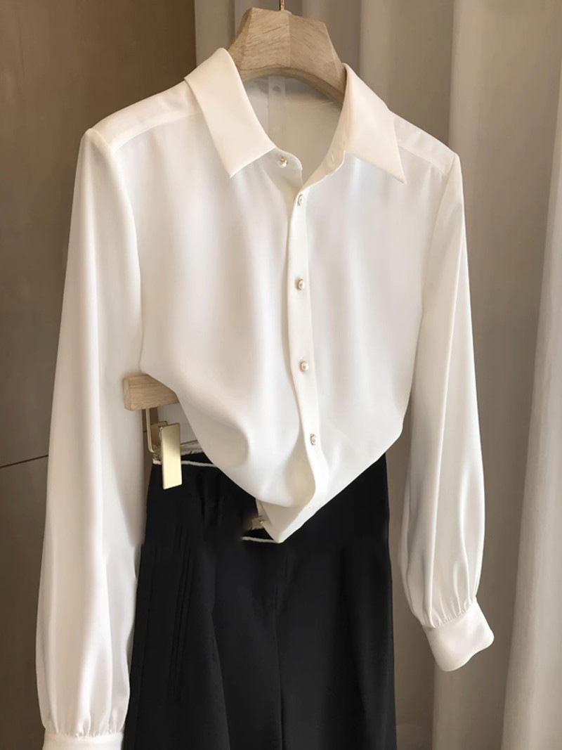 2025 새로운 구슬 버튼 긴 소매 셔츠 탑 여성의 봄 봄 느슨한 통기성 레트로 패션 올 매치스토어 가기