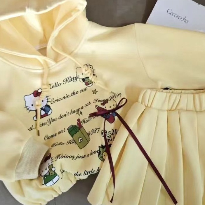 소녀 2025 새로운 도착 치마 봄 가을 대학 스타일 스웨트 세트 어린이 여성 봄 옷 유행 서양식 착용 세트스토어 가기