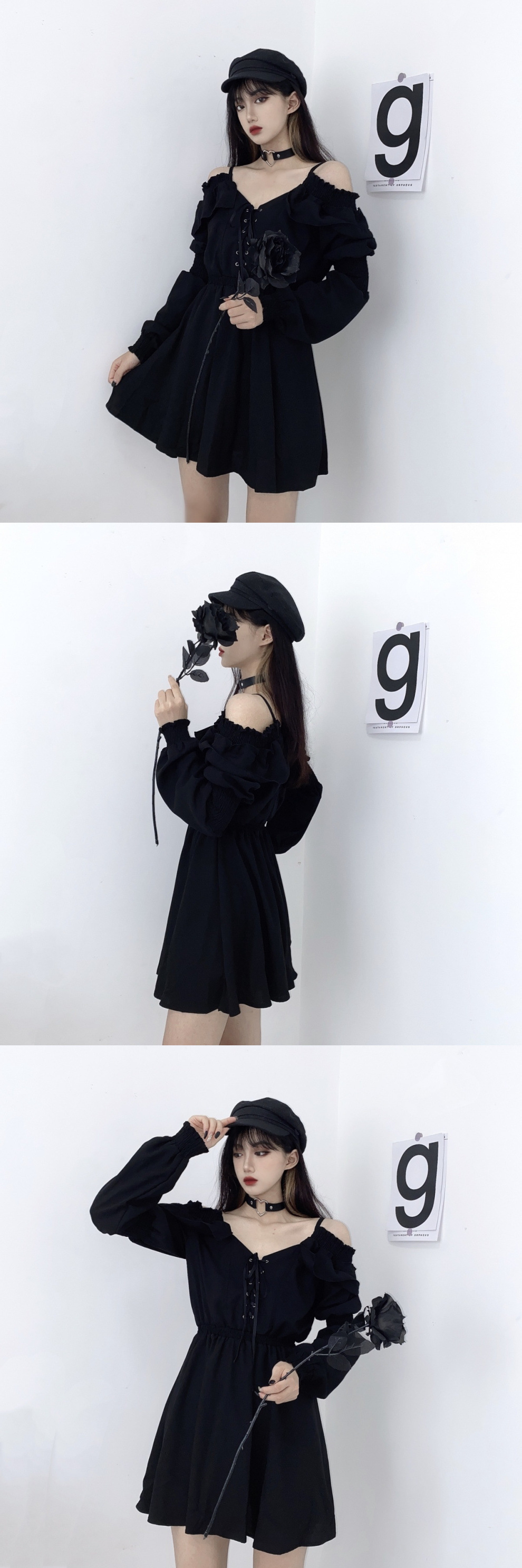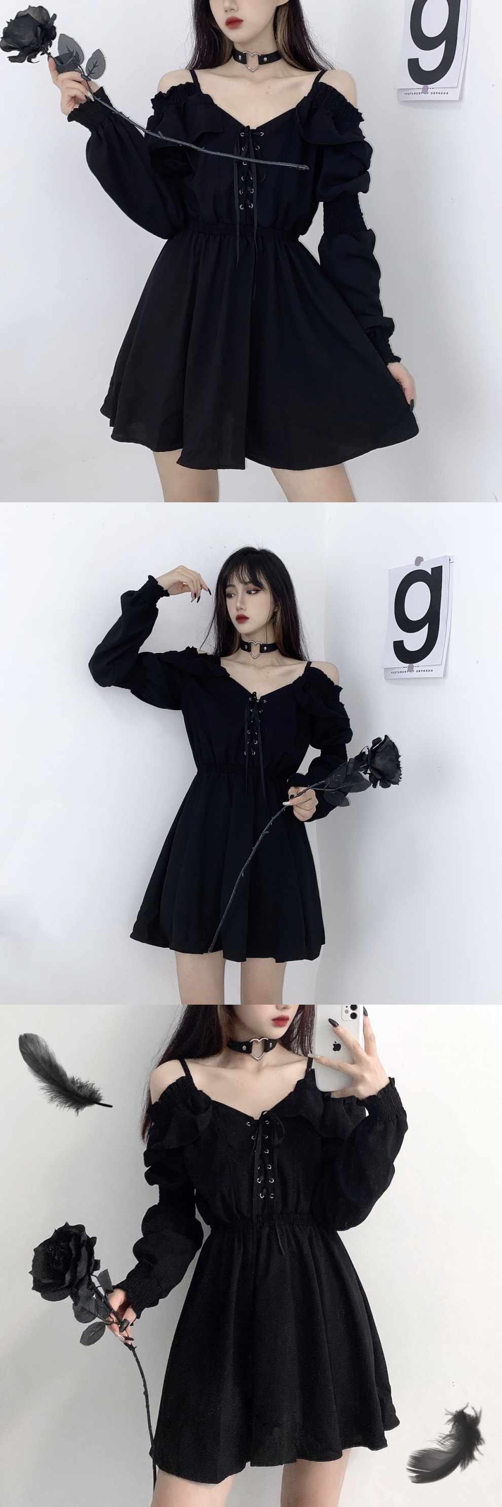 플러스 사이즈 통통녀 디아블로 헵번 스타일 레이스 원피스 여성 가을 어깨 끈 스키니 블랙 원피스 200kg스토어 가기