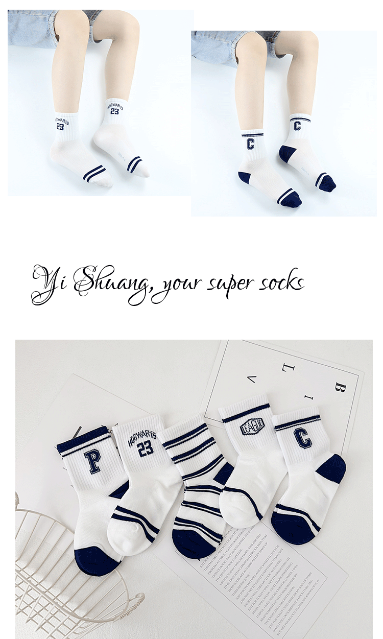Yi Shuang 쌍 어린이 양말 여름 새로운 메쉬 통기성 유행 브랜드 편지 중간 튜브 양말 코튼 보이즈 스포츠 양말스토어 가기