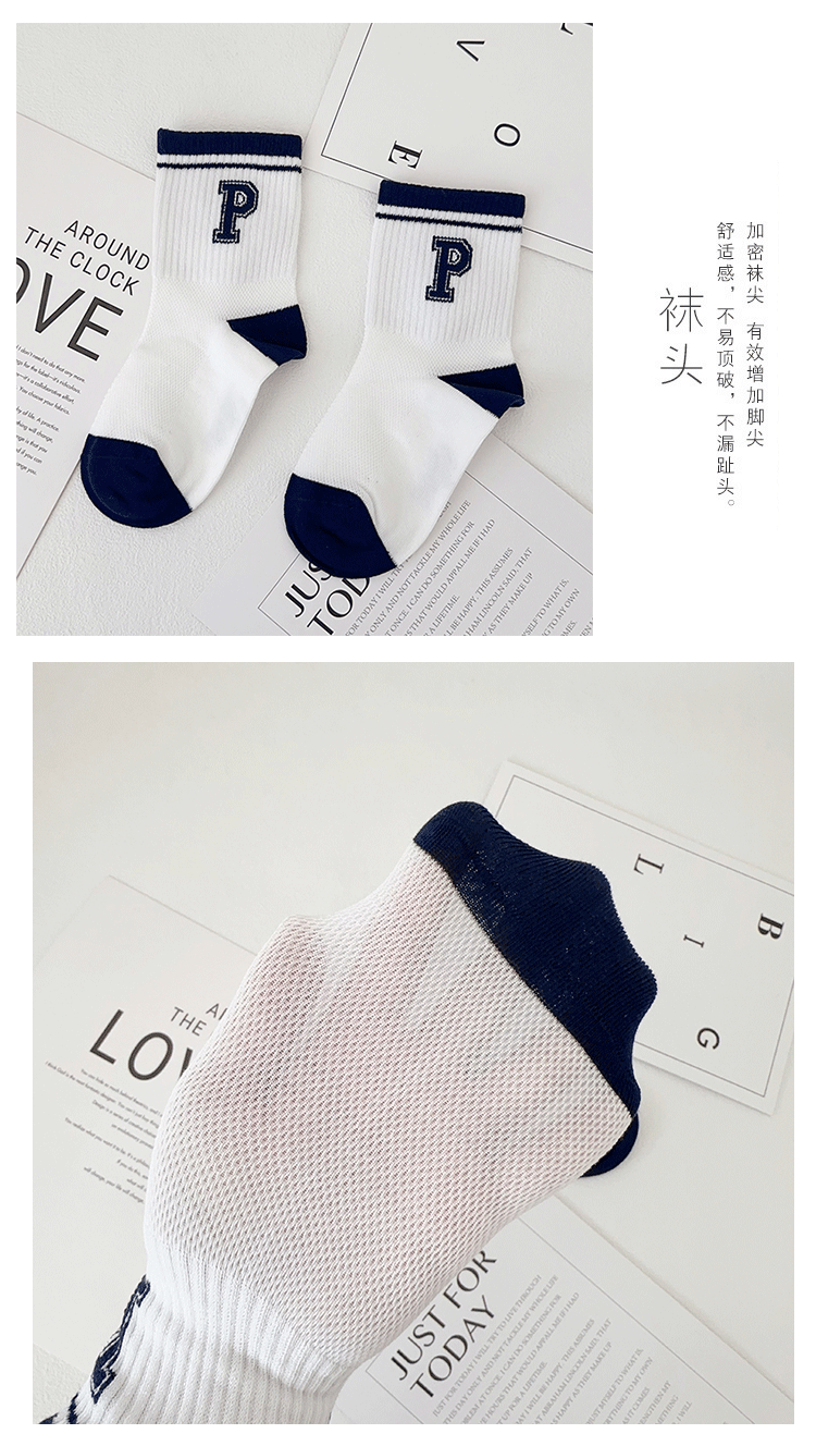Yi Shuang 쌍 어린이 양말 여름 새로운 메쉬 통기성 유행 브랜드 편지 중간 튜브 양말 코튼 보이즈 스포츠 양말