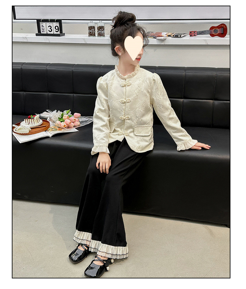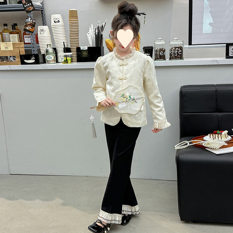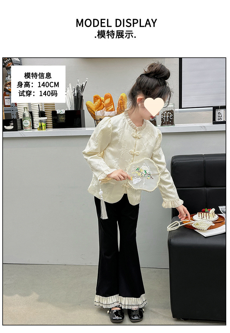 소녀의 새로운 중국 스타일 세트 봄 원피스 2024 새로운 어린이 봄과 가을 유행 큰 어린이를위한 2 피스 세트