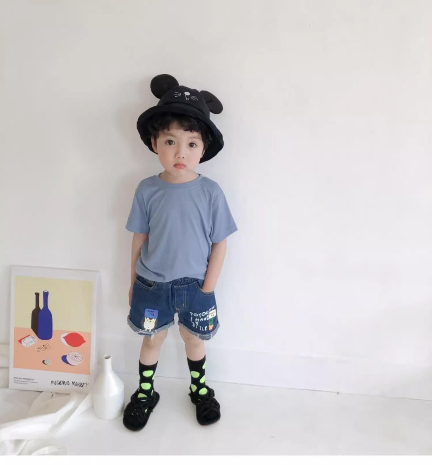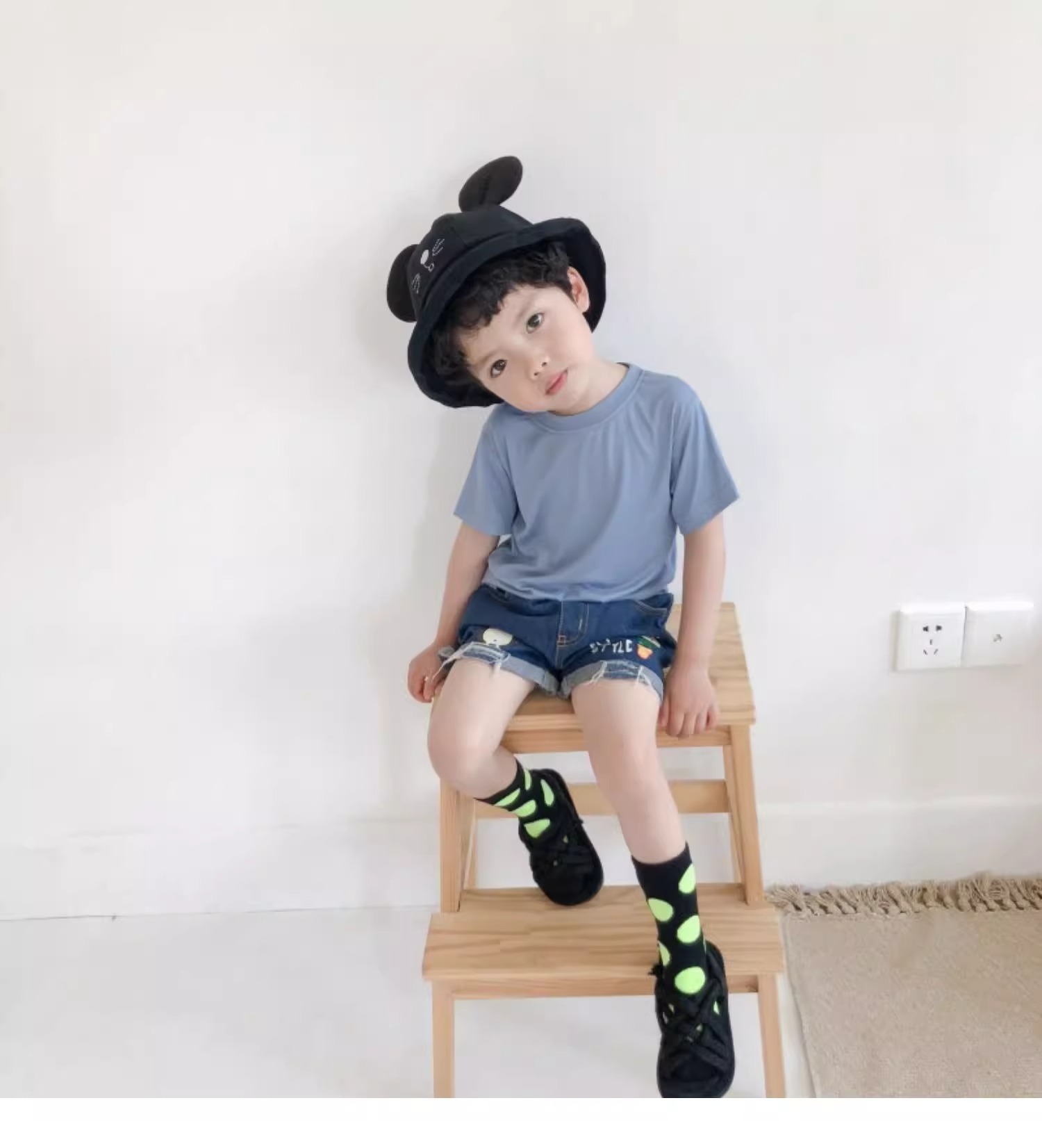 2025 년 여름 뼈없는 어린이 모달 티셔츠 반팔 한국 새 베이비 마스크 탄성베이스 셔츠 탑스토어 가기