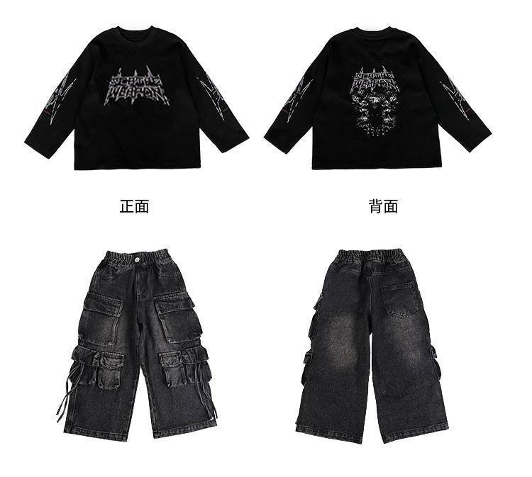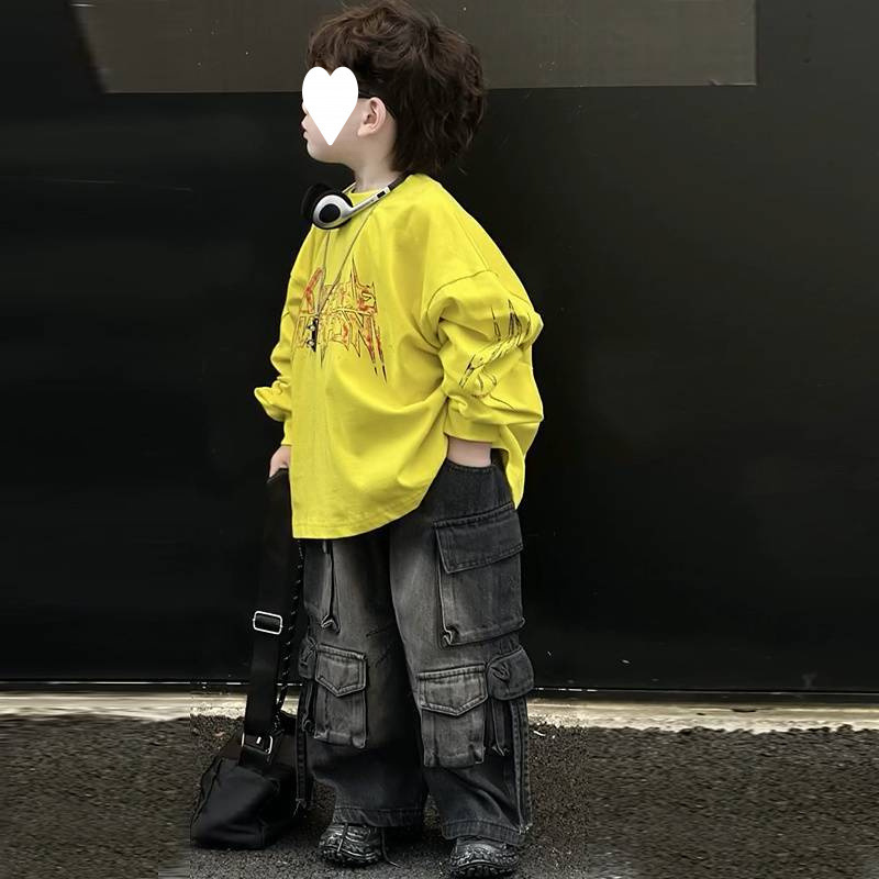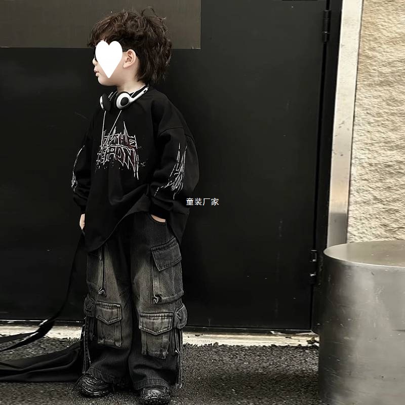 새로운 소년 가을 인쇄 땀 청바지 세트 2025 새로운 남성과 여성의 아기 땀 패션 세련된 두