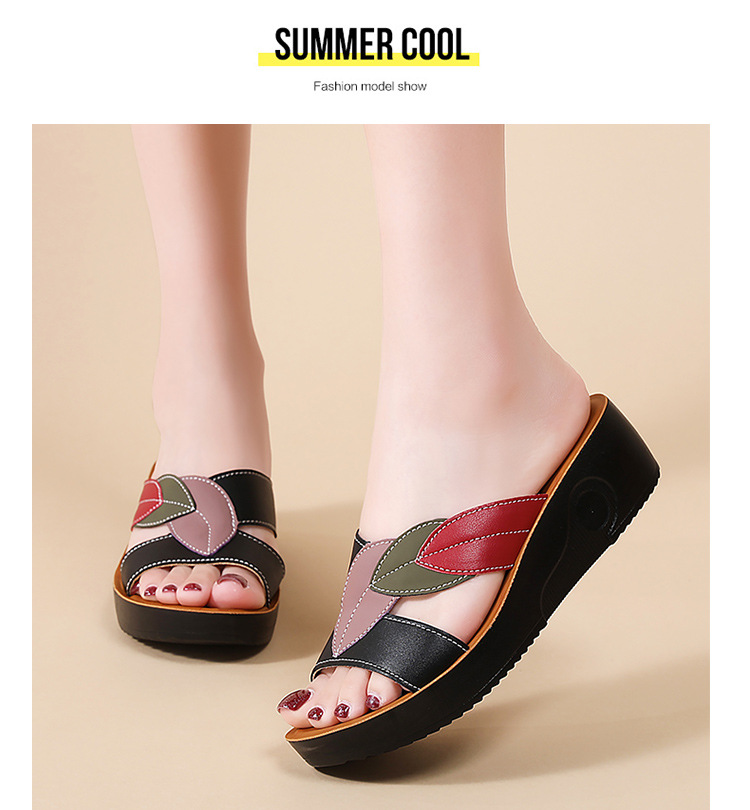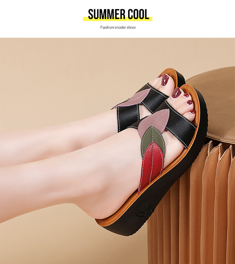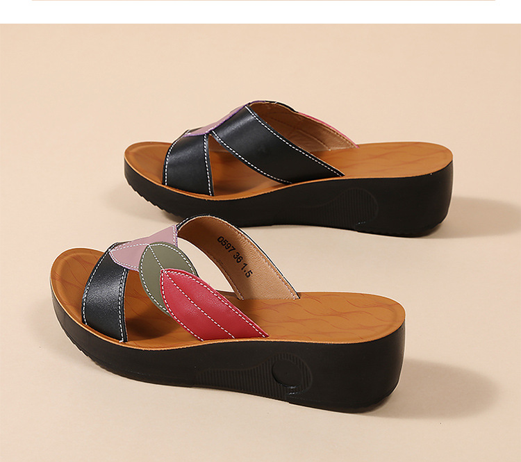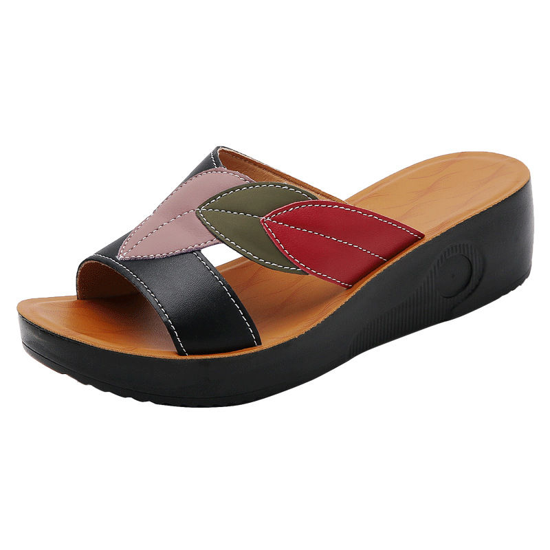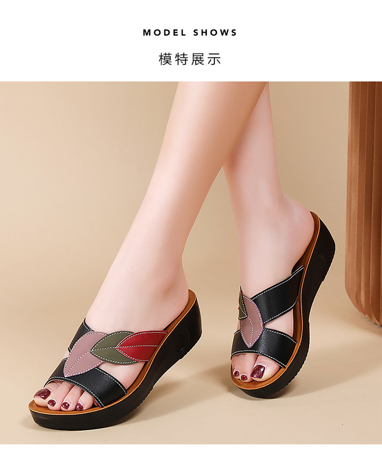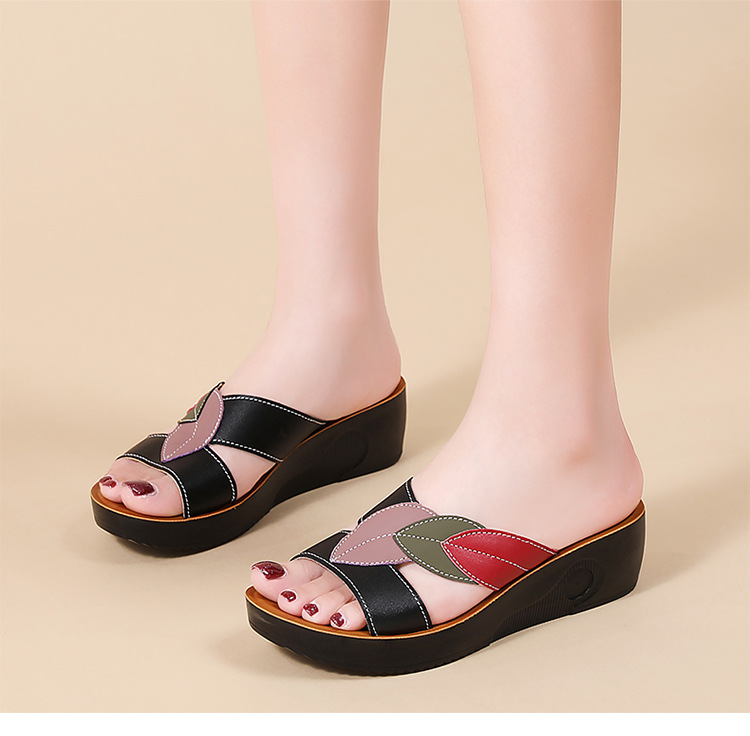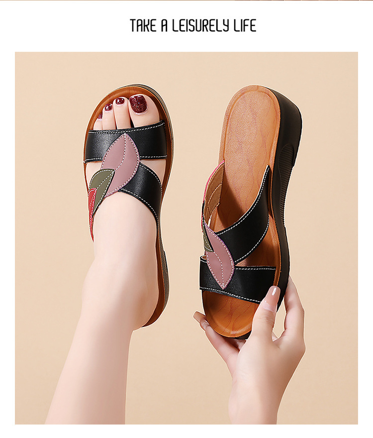 슬리퍼 여성 여름 아우터 2025 새로운 패션 중년 어머니 신발 미끄럼 방지 소프트 단독 중년 가죽 샌들 및 슬리퍼