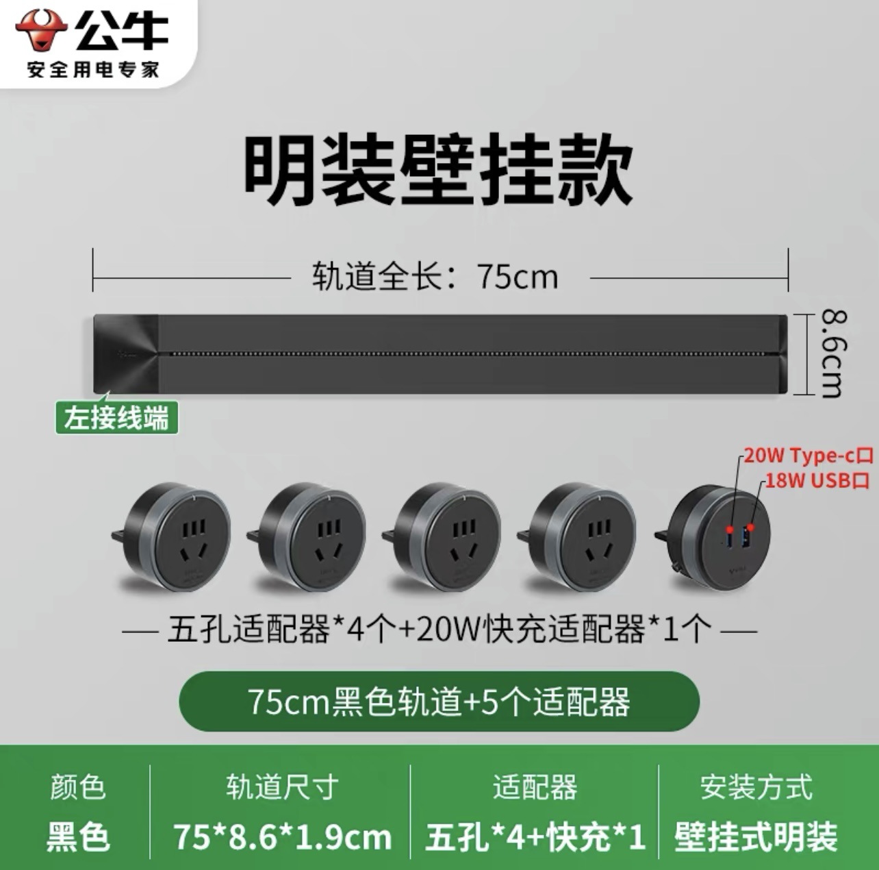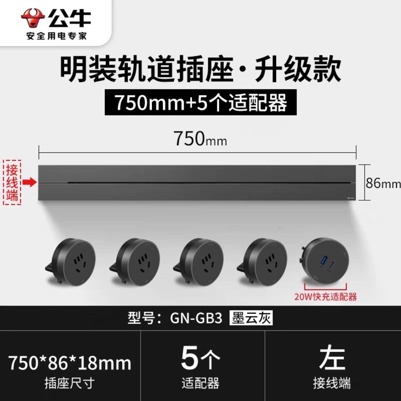 • 마스터 표면 장착 모델 [모윤 그레이] 75cm + 4개의 5홀 + 1개의 20W 고속 충전 USB
