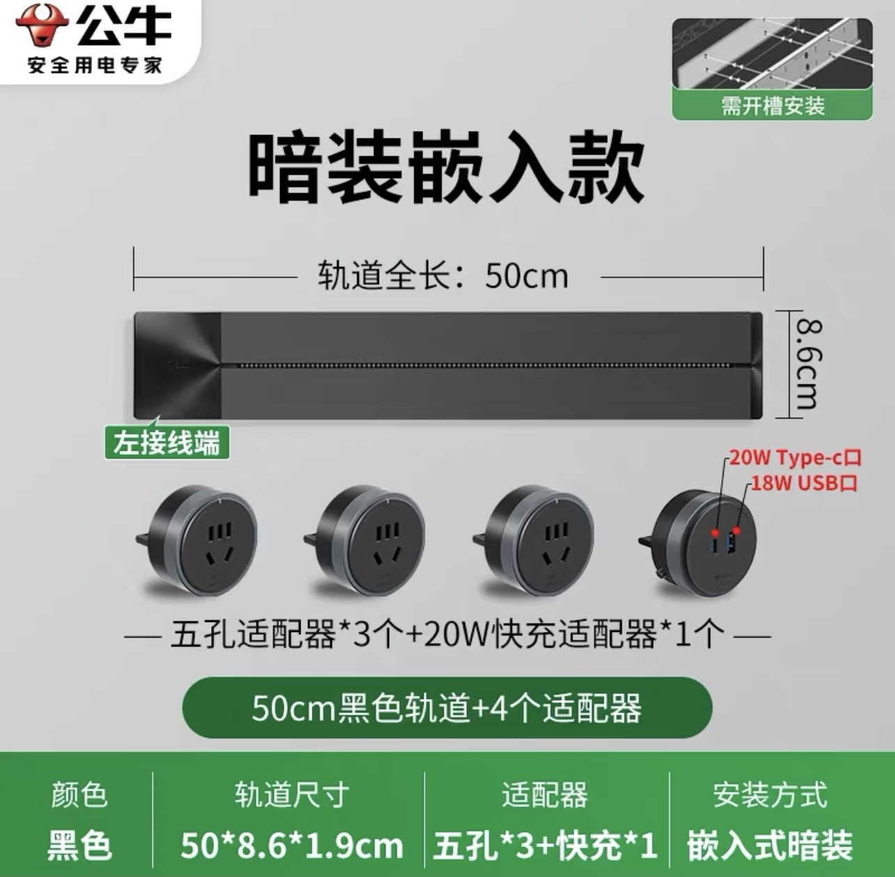 Bull Master Moyun Gray 업그레이드 움직일 수있는 파워 트랙 소켓 주방 섬 사이드 보드 가이드 삽입