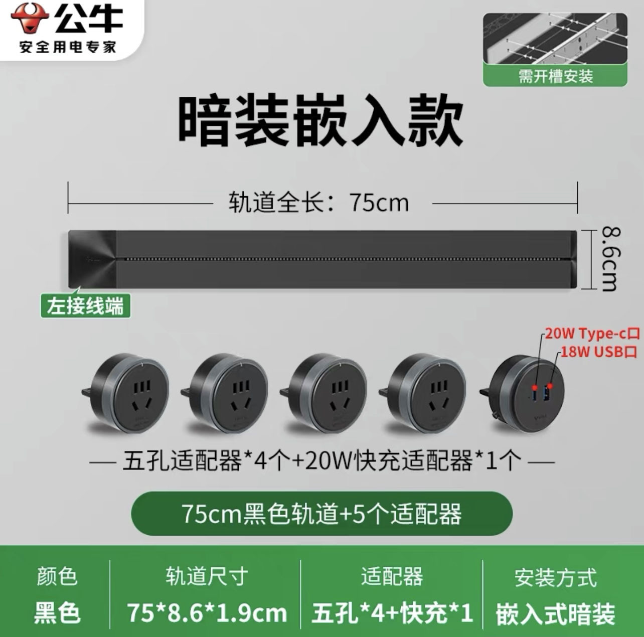 • 검정색 숨겨진 설치 내장형 75cm+4 5홀+1 USB