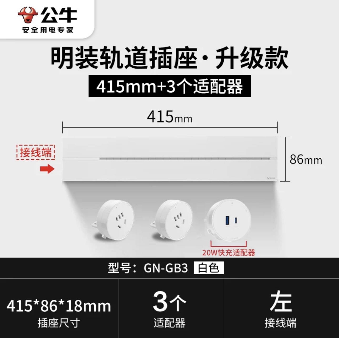 • 마스터 표면 장착 모델 [화이트] 41.5cm + 2개의 5홀 + 1개의 고속 충전 20W USB