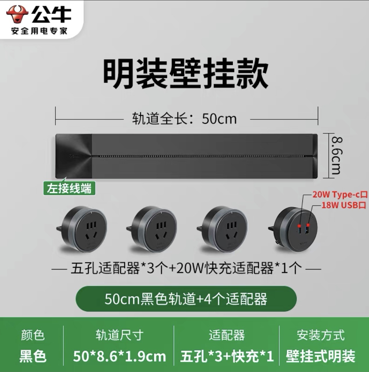 • 마스터 표면 장착 모델 [모윤 그레이] 50cm + 3개의 5홀 + 1개의 고속 충전 20W USB