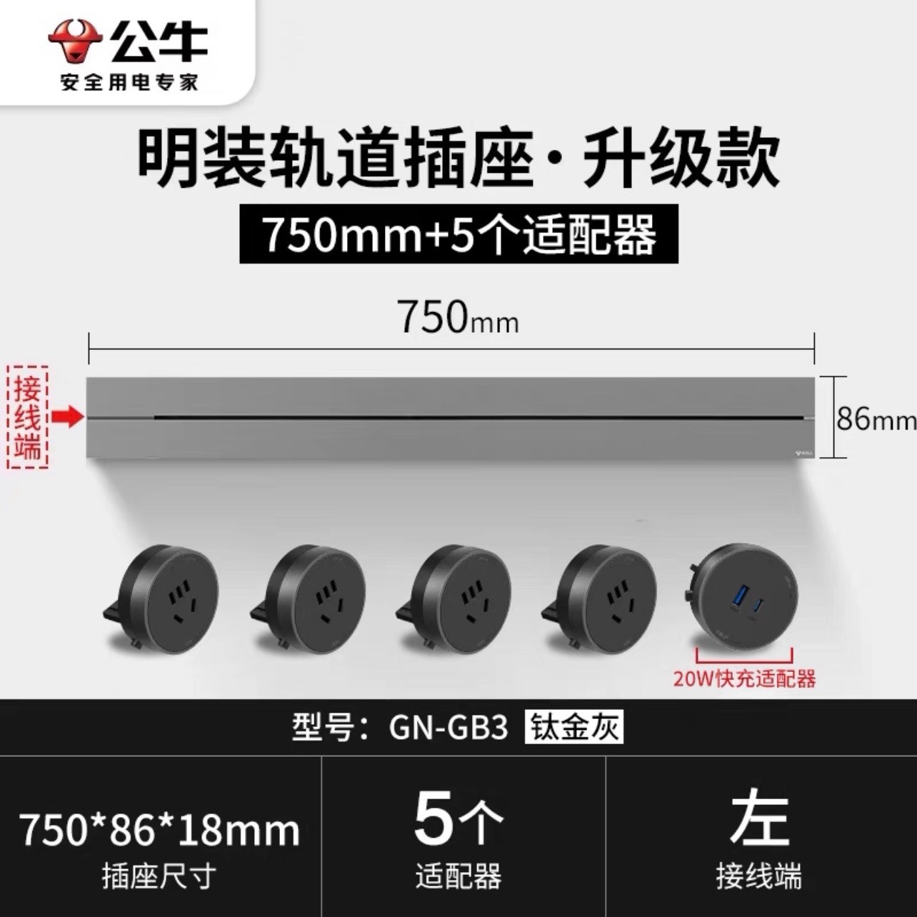 • 마스터 표면 장착 모델 [티타늄 그레이] 75cm + 4개의 5홀 + 1개의 20W 고속 충전 USB