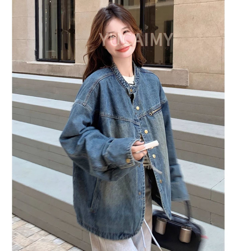 홍콩 스타일 레트로 패션 올드 데님 코트 여성의 2025 봄과 가을 새로운 느슨한 슬리밍 캐주얼 통근 탑스토어 가기