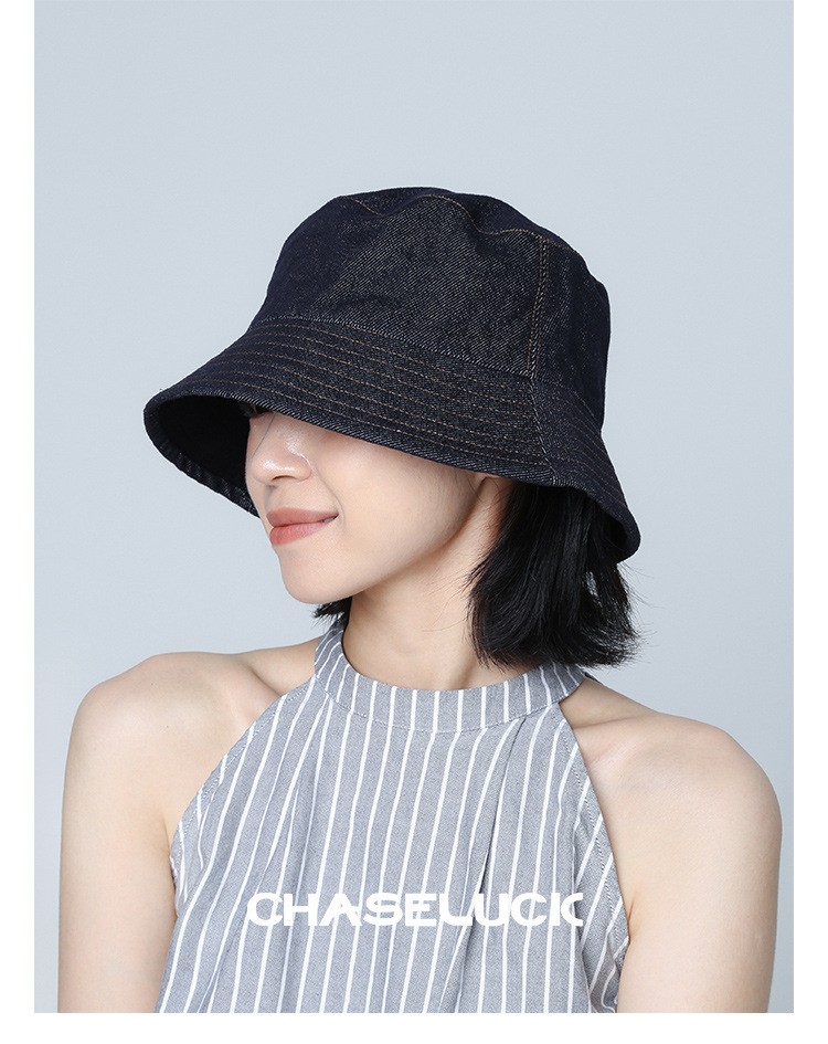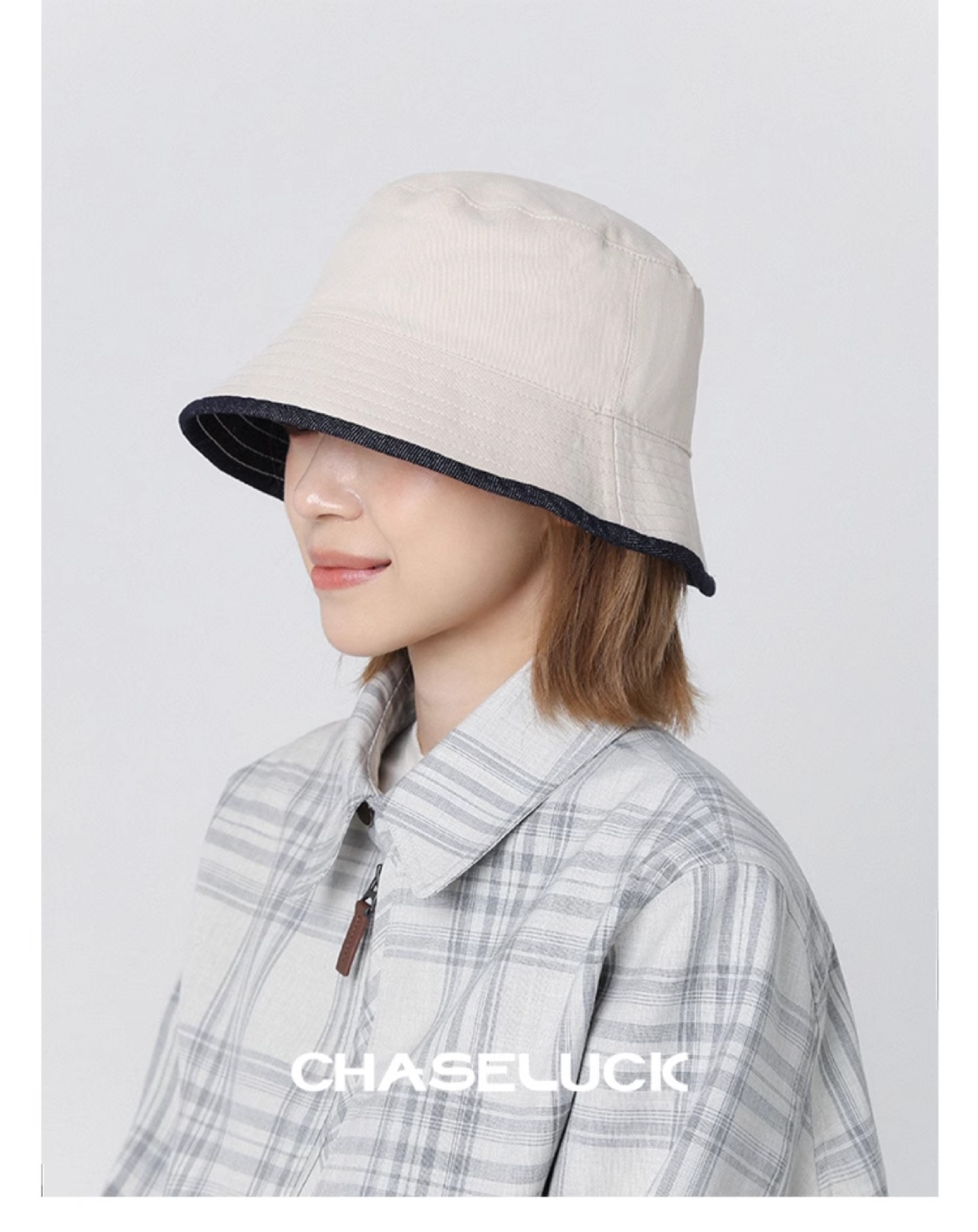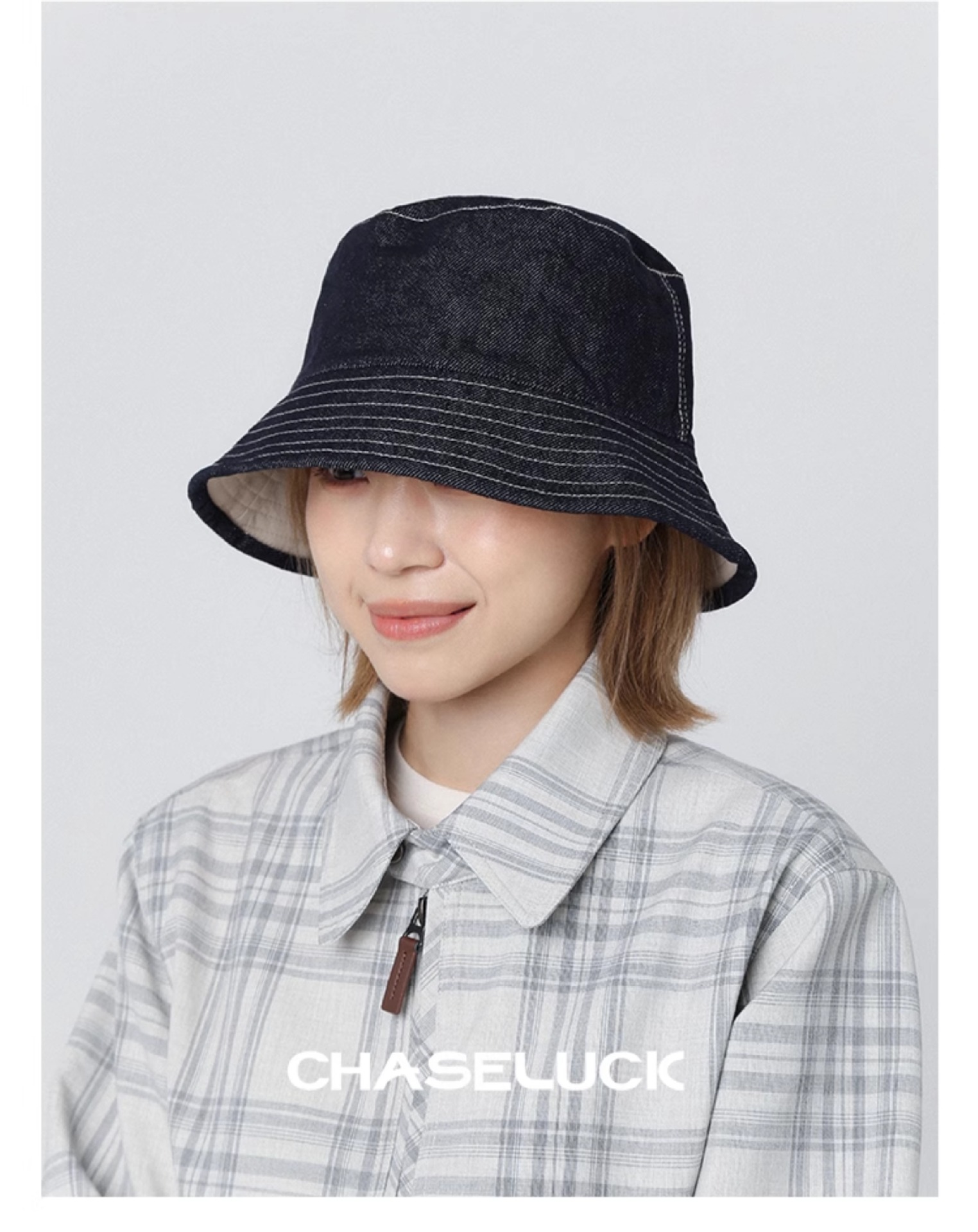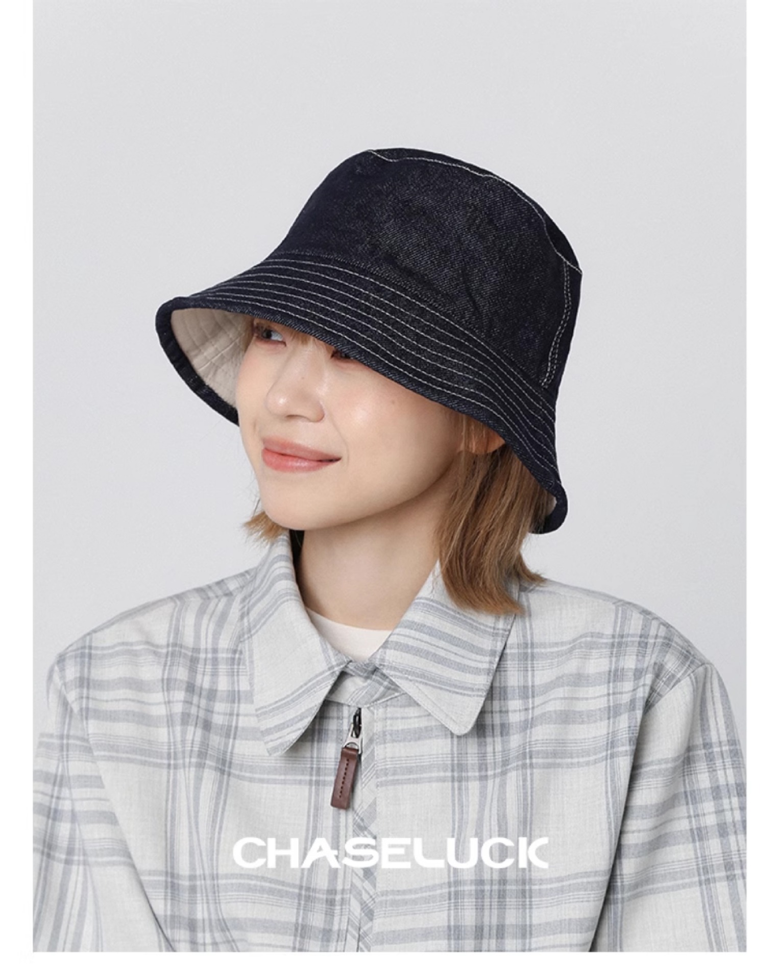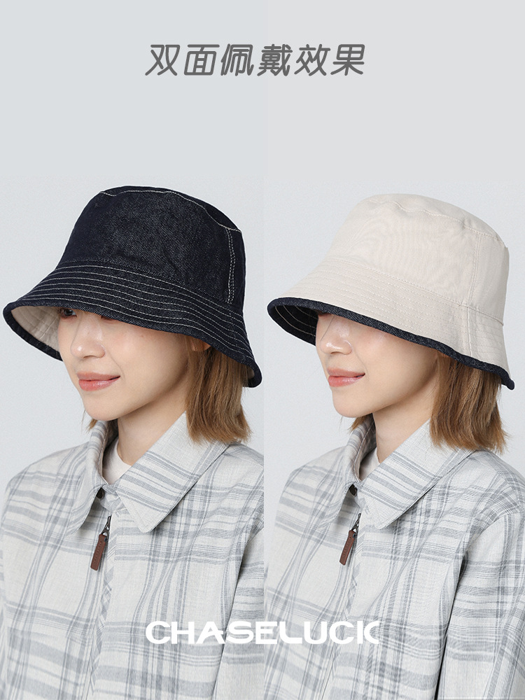 双面可戴新款牛仔帽渔夫帽2025春夏女户外防晒帽子大头围遮阳盆帽