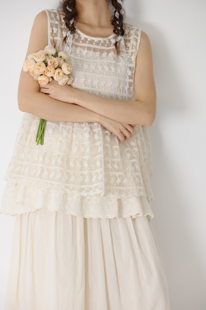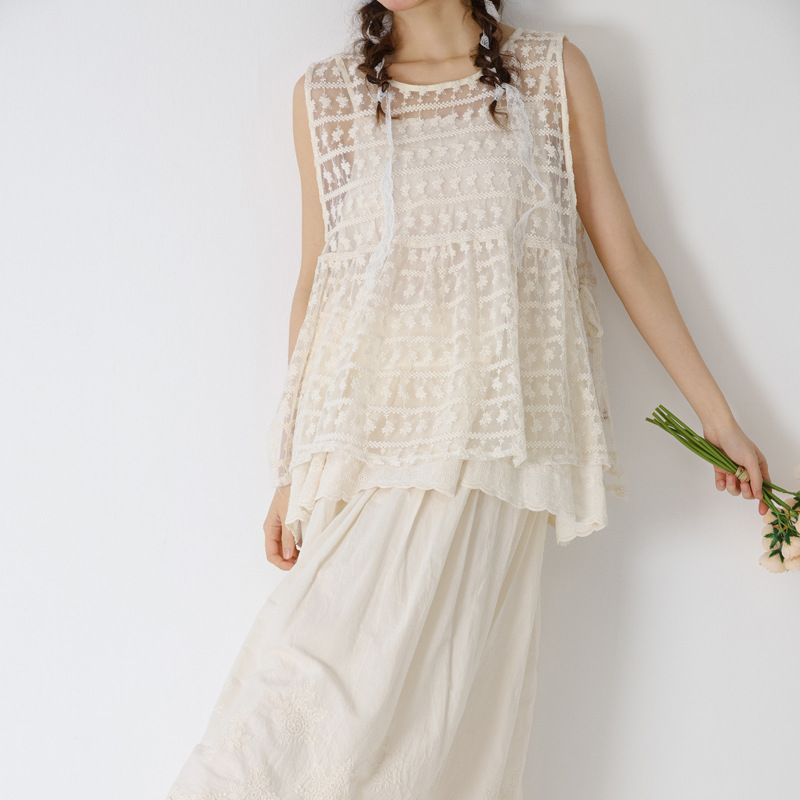 한국 여름 새로운 달콤한 자수 레이스 셔츠 크로 셰 빈 루즈 올 매치 민소매 조끼 조끼 여자 탑