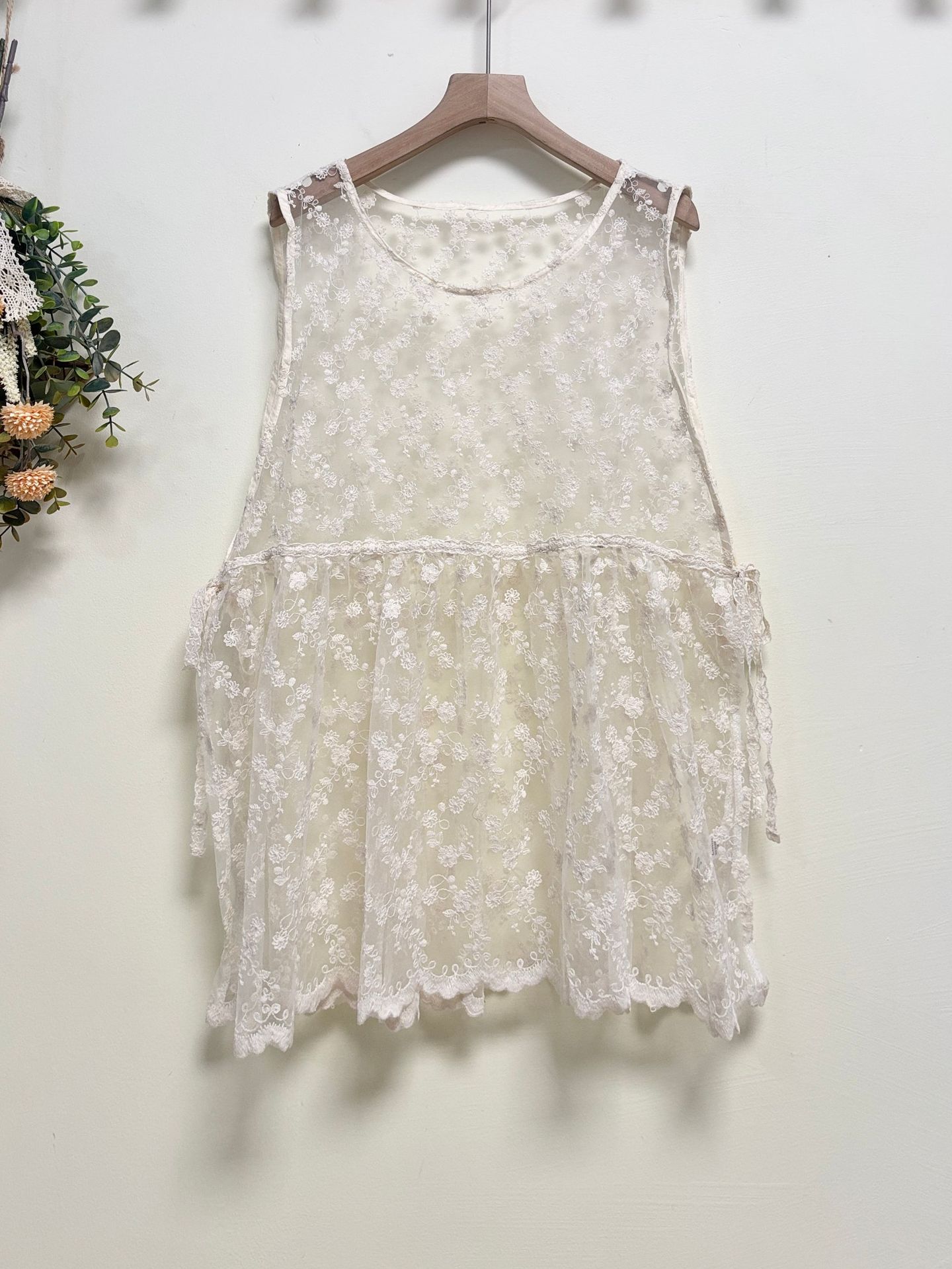 한국 여름 새로운 달콤한 자수 레이스 셔츠 크로 셰 빈 루즈 올 매치 민소매 조끼 조끼 여자 탑스토어 가기