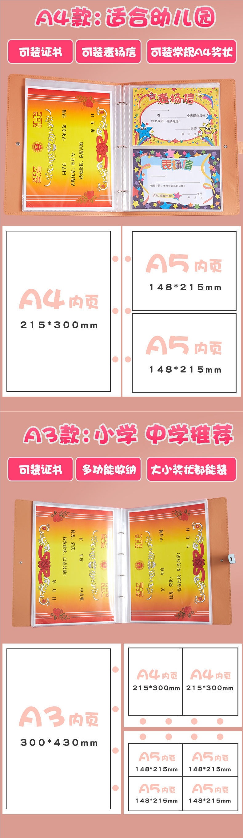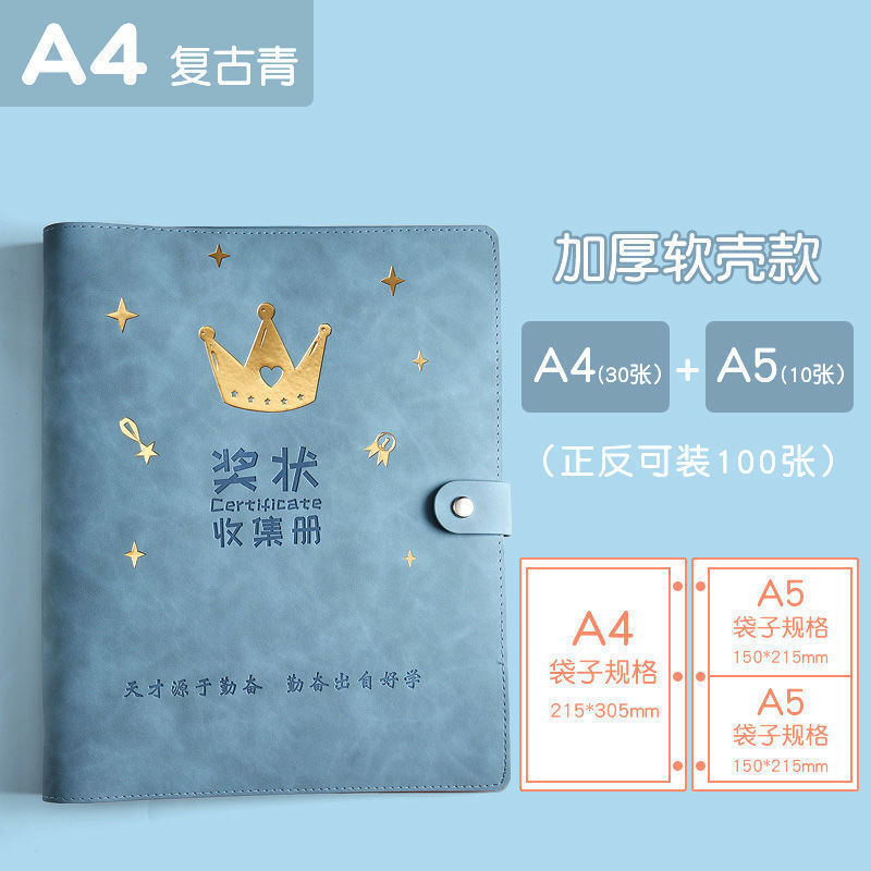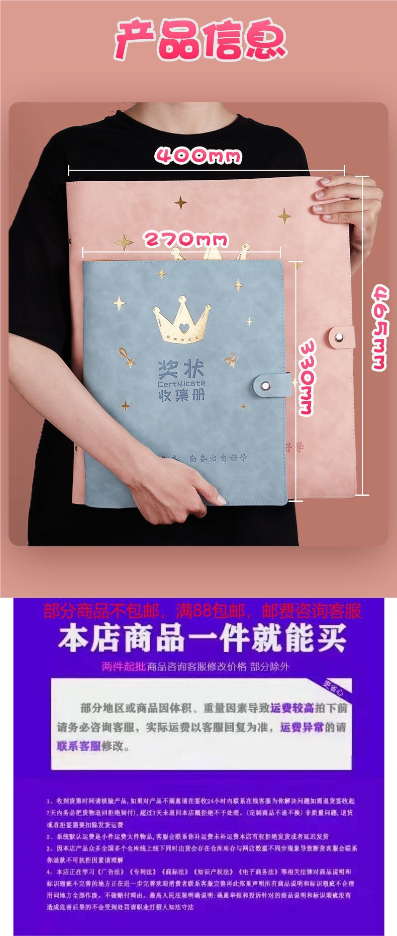 남학생과 여학생을위한 인증서 수집 도서 대형 가죽 느슨한 잎 높은 색상 가치 초등 학생 명예 수집 도서 가죽 시스템 인증서스토어 가기