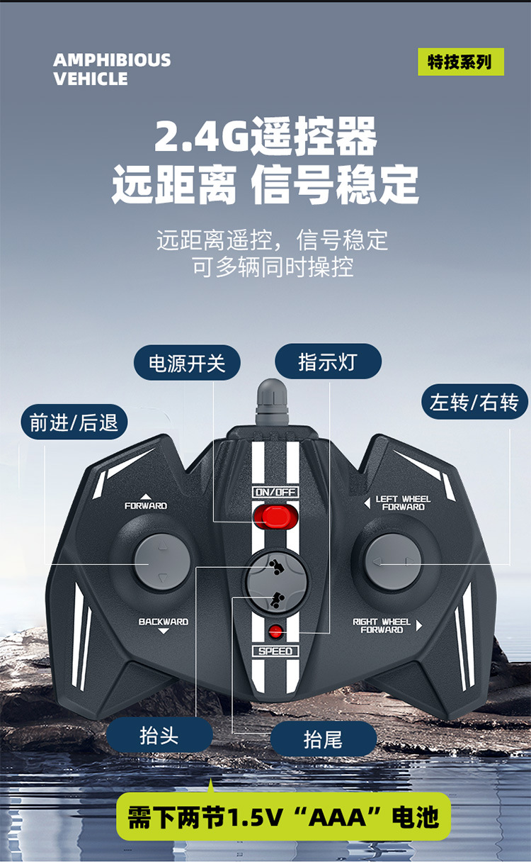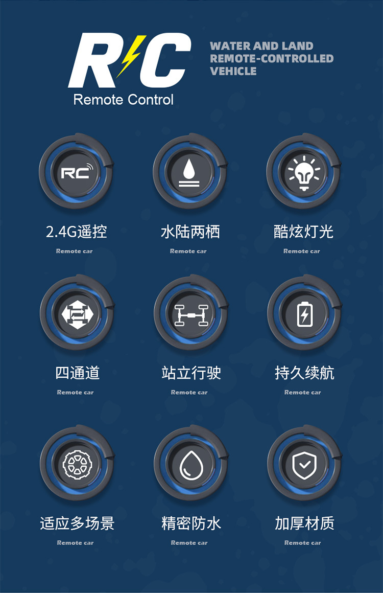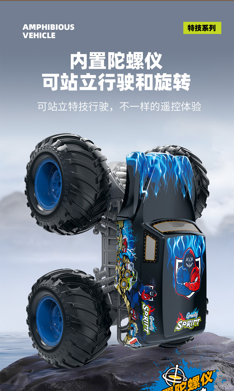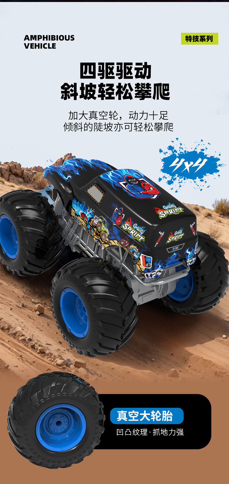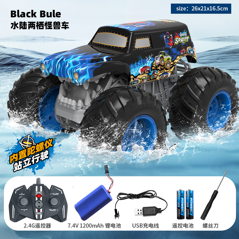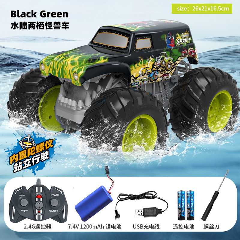 국경 간 수륙 양용 스턴트 자동차 어린이 방수 원격 제어 자동차 등반 오프로드 차량 소년 장난감 비행선