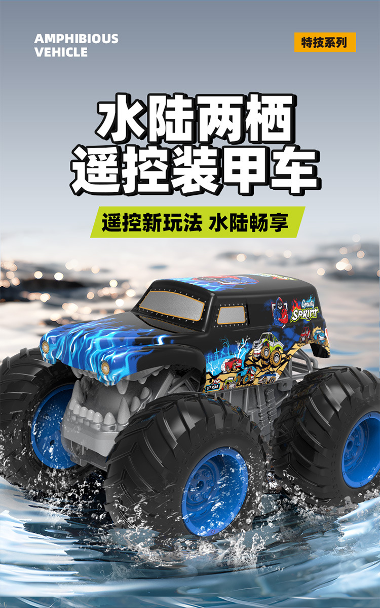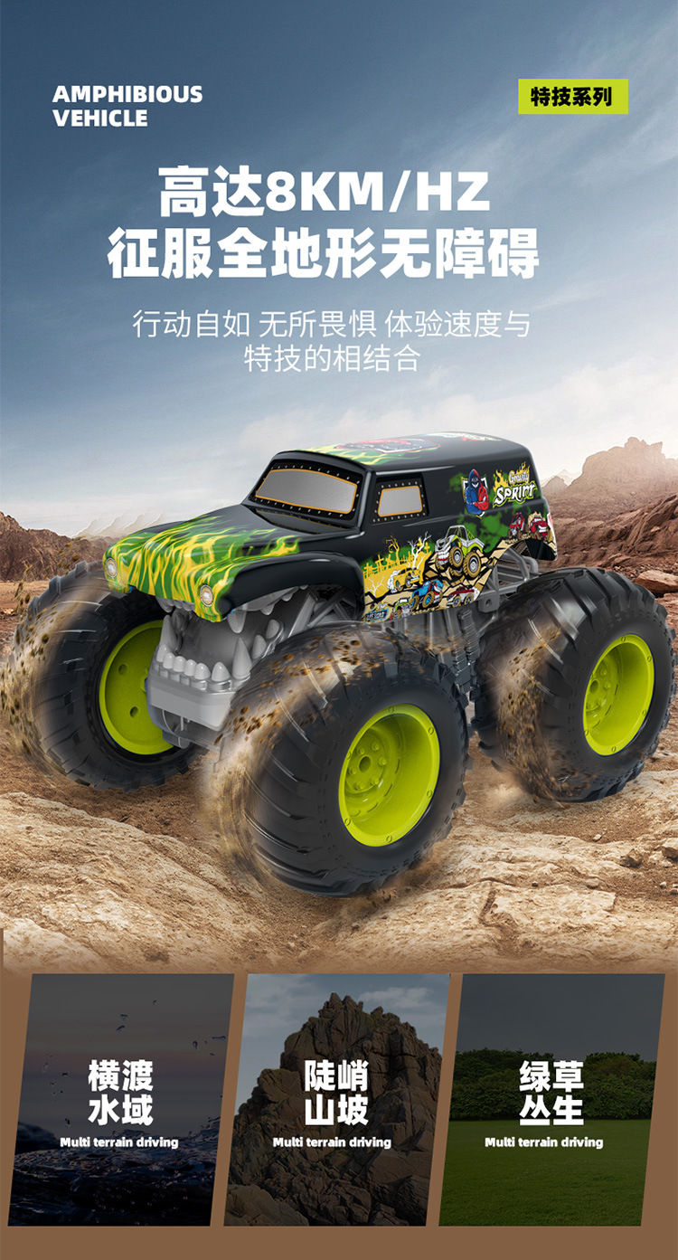 국경 간 수륙 양용 스턴트 자동차 어린이 방수 원격 제어 자동차 등반 오프로드 차량 소년 장난감 비행선스토어 가기