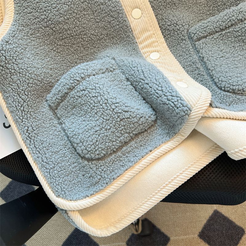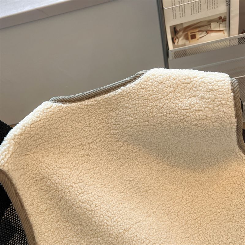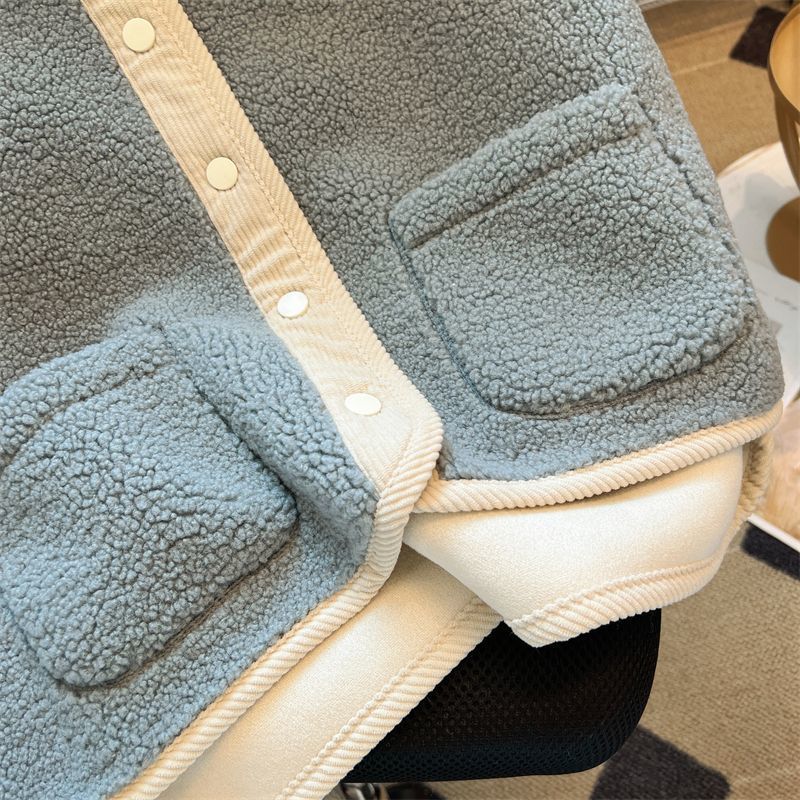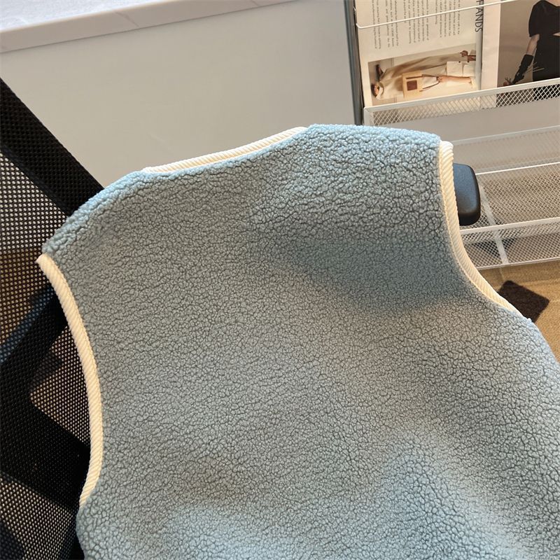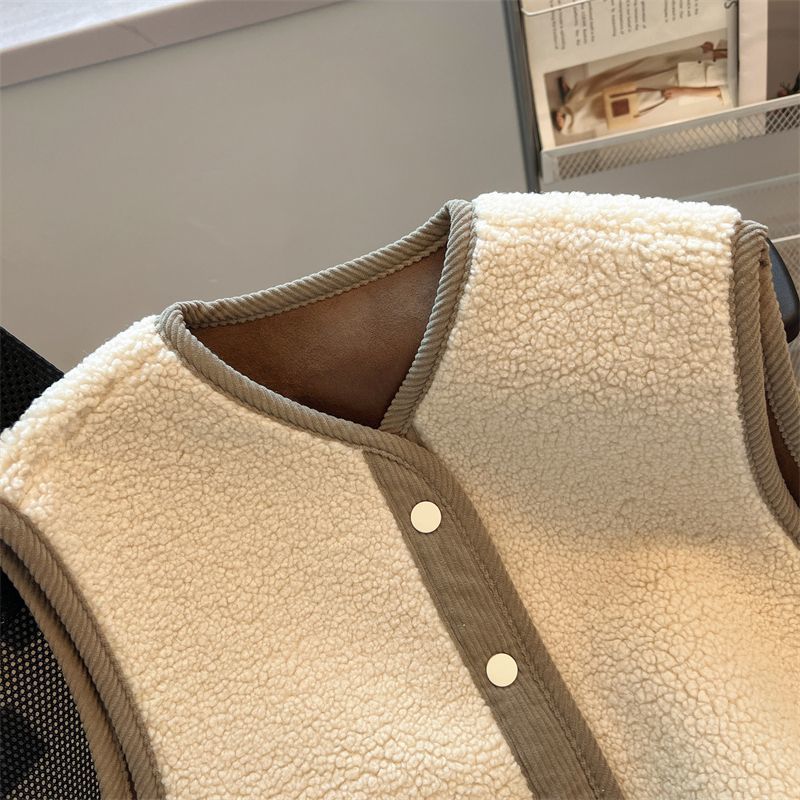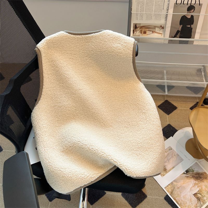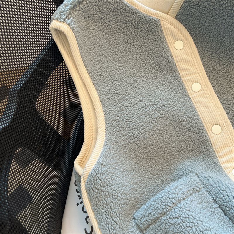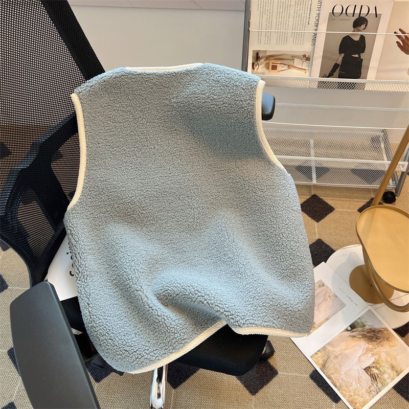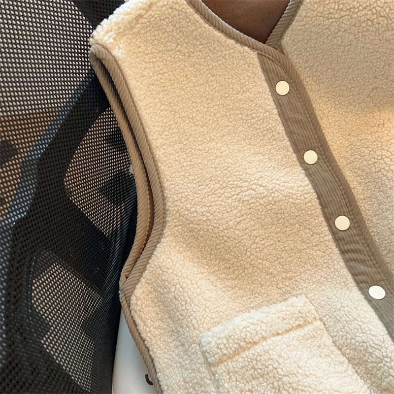 가을과 겨울 대비 컬러 람스울 코트 느슨한 슬리밍 웨어 조끼 셔츠 한국 스타일 부드러운 스타일 작은 향기로운 조끼 여성을위한스토어 가기
