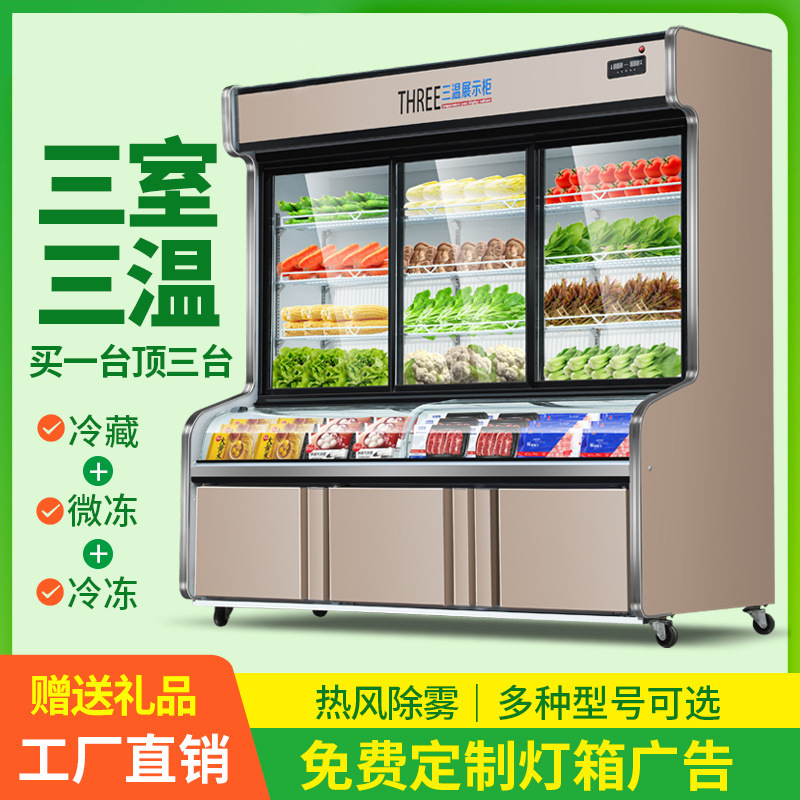 일품 바베큐 신선한 냉장고 냉장 상업용 디스플레이 캐비닛 더블 따뜻한 말라 탕 냉동고 3 온도 냉동고