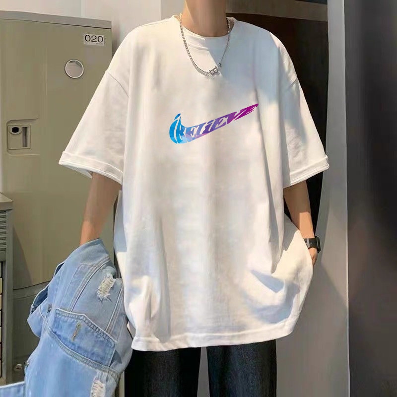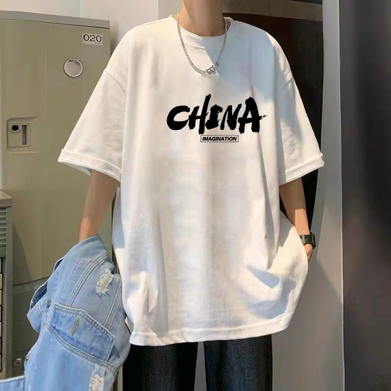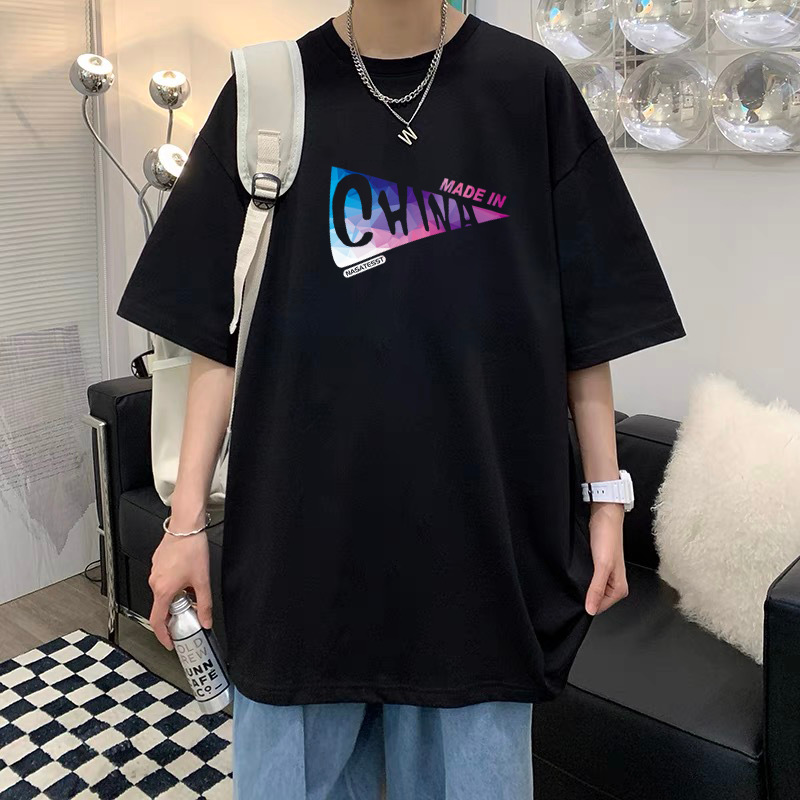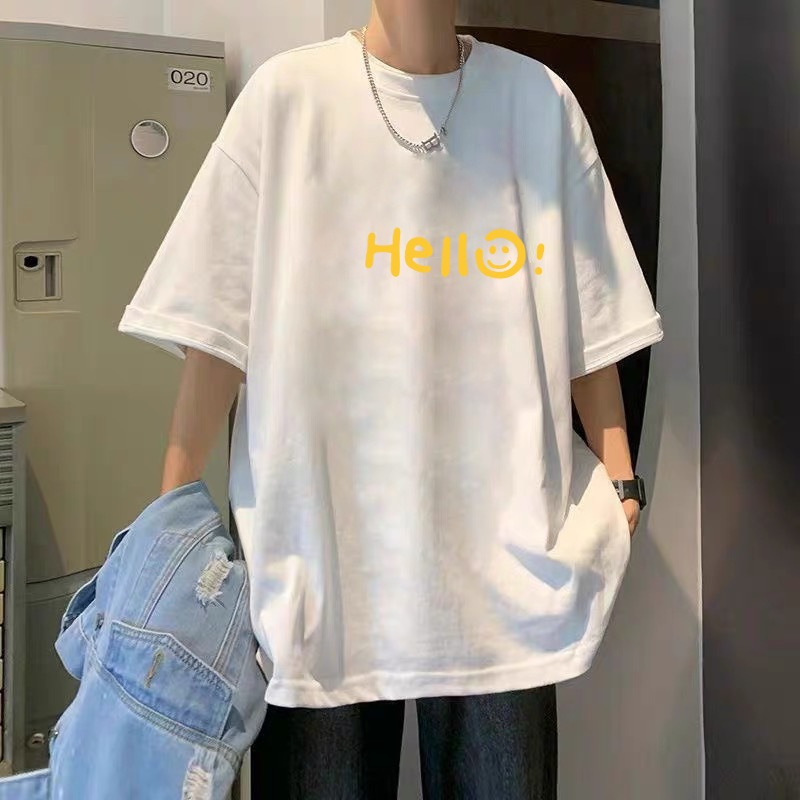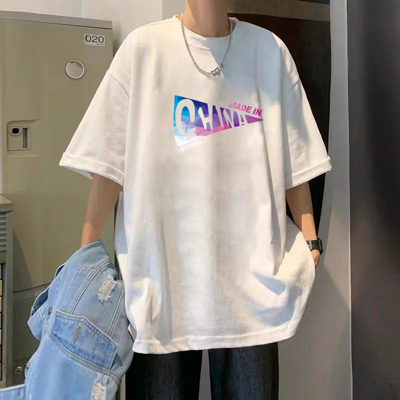 여름 슈퍼 핫인 홍콩 스타일 트렌디 브랜드 퓨어 코튼 프린트 반팔 티셔츠 남성용 라운드 넥 루즈 올 매치 탑 반팔 티셔츠