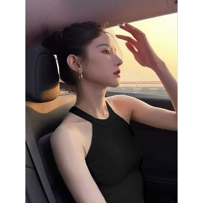 빈티지 넥 니트 조끼 여자 여름 2025 새로운 하이 엔드 올 매치 퓨어 스파이스 걸스 쇼트베이스 탑