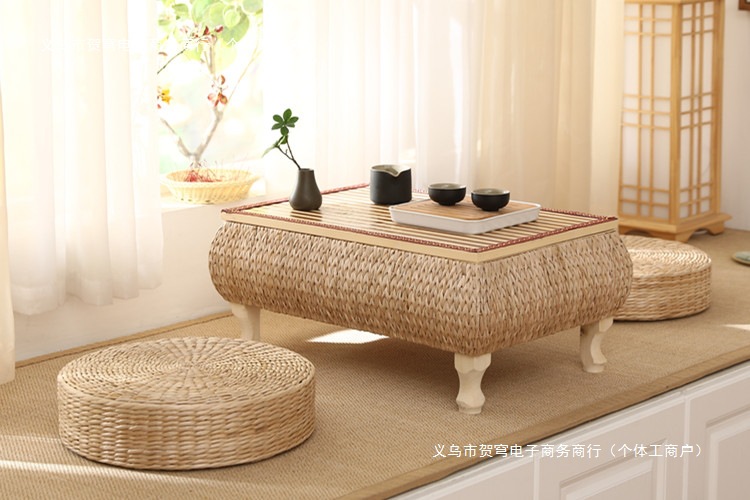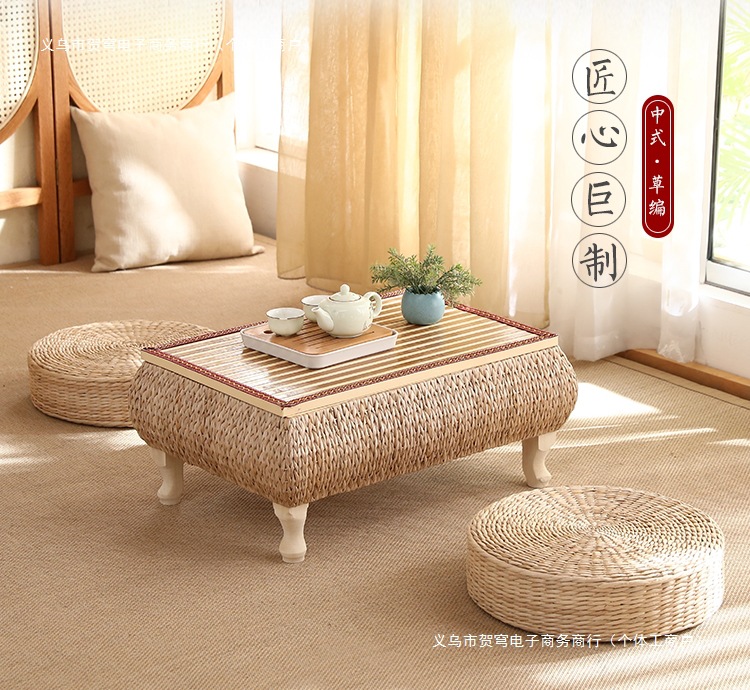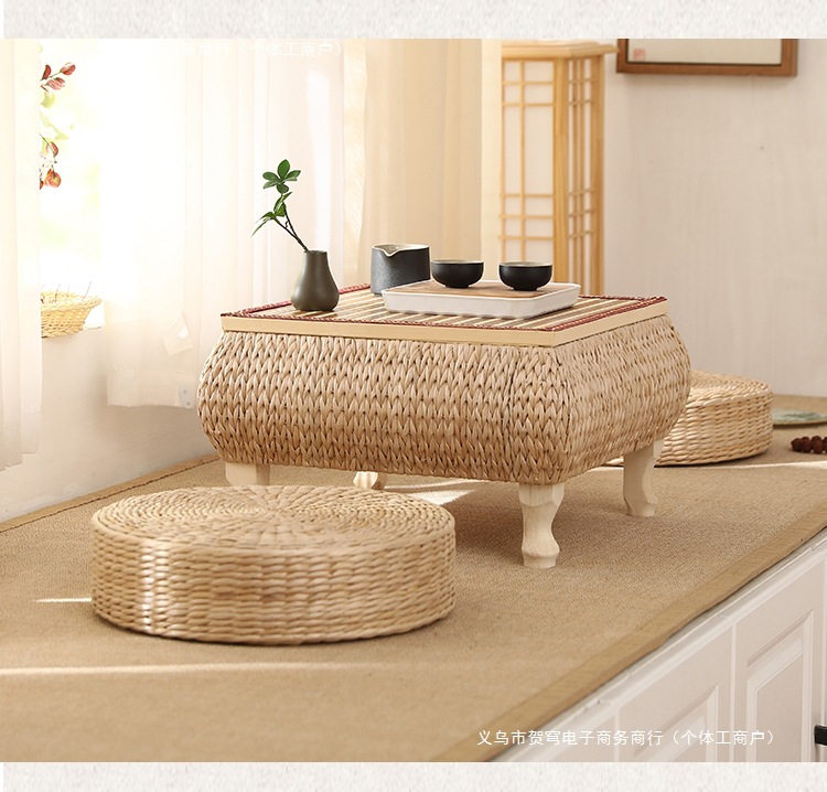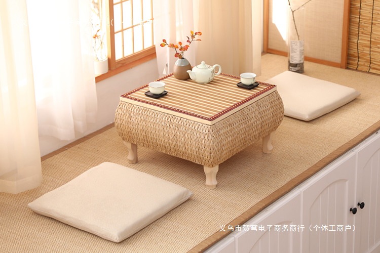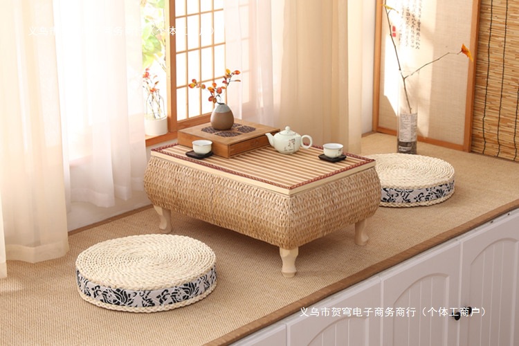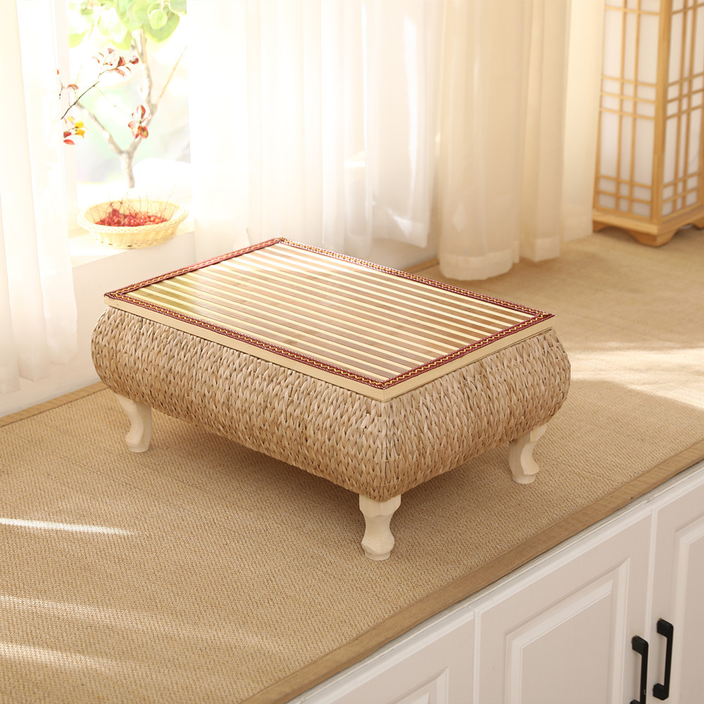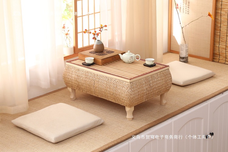 등나무로 짠 인터넷 연예인 일본식 선비 단단한 나무 다다미 커피 테이블 플로팅 창 테이블 수납 작은 사각형 테이블 침대 테이블 발코니 티 테이블