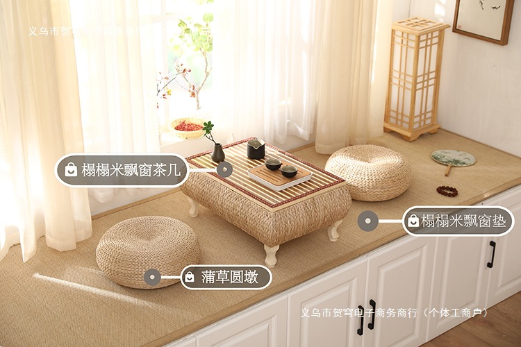 등나무로 짠 인터넷 연예인 일본식 선비 단단한 나무 다다미 커피 테이블 플로팅 창 테이블 수납 작은 사각형 테이블 침대 테이블 발코니 티 테이블스토어 가기