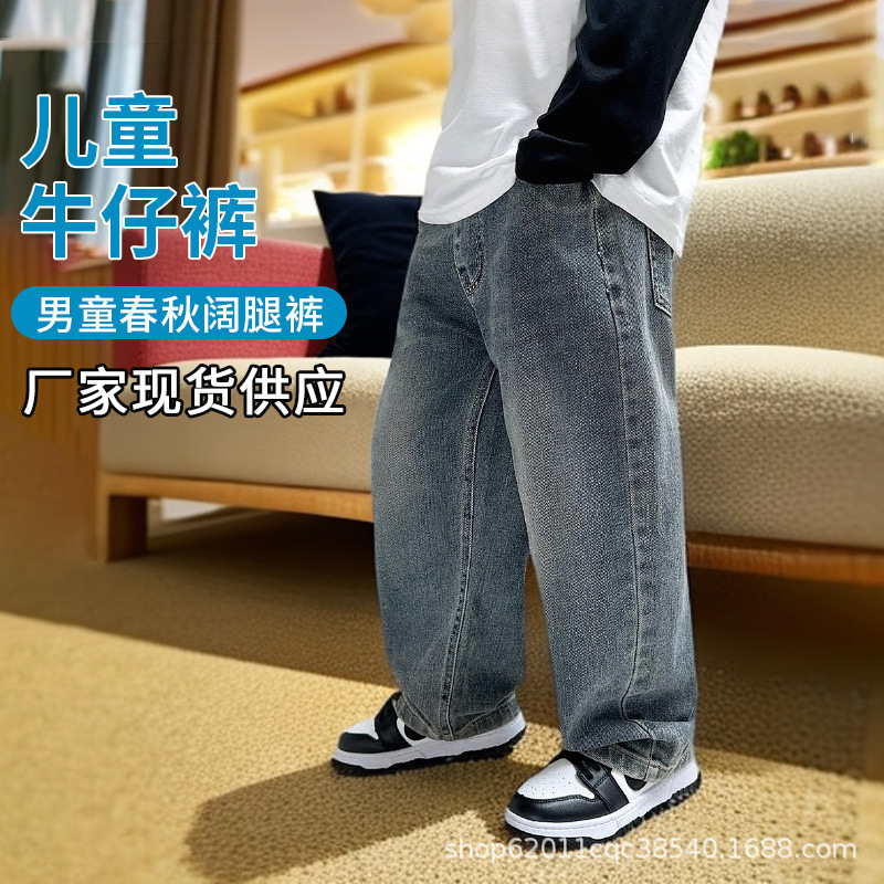 아동복 소년 청바지 봄 착용 어린이 바지 2025 년 봄과 가을 새로운 복고풍 서양식 스트레이트 바지스토어 가기