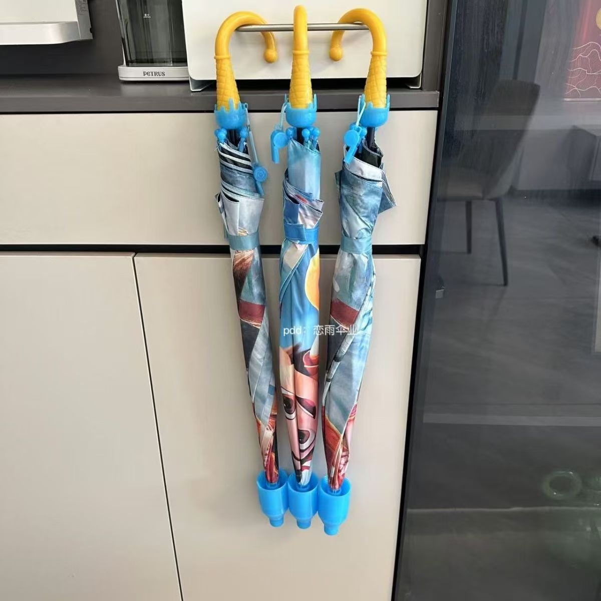 Nezha Ao C 어린이 반자동 검은 색 고무 선 스크린 빛 맑은 우산 방수 커버 남성과 여성 학생 긴 핸들 우산 도매스토어 가기