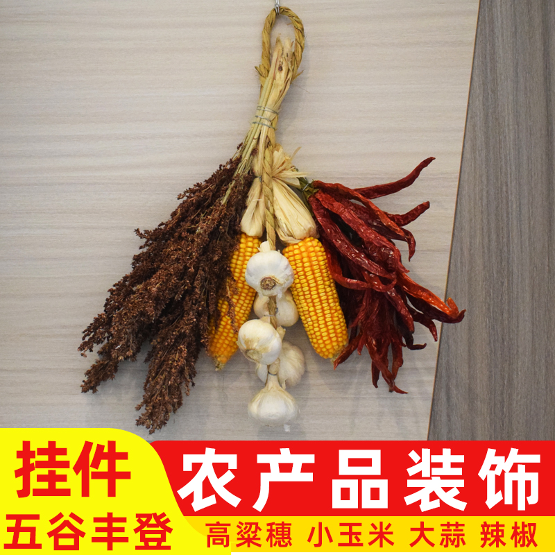마늘 끈 매달린 옥수수 속 말린 고추 축제 태양 가을 곡물 수확 벽 장식 펜던트 진짜 곡물 수확스토어 가기