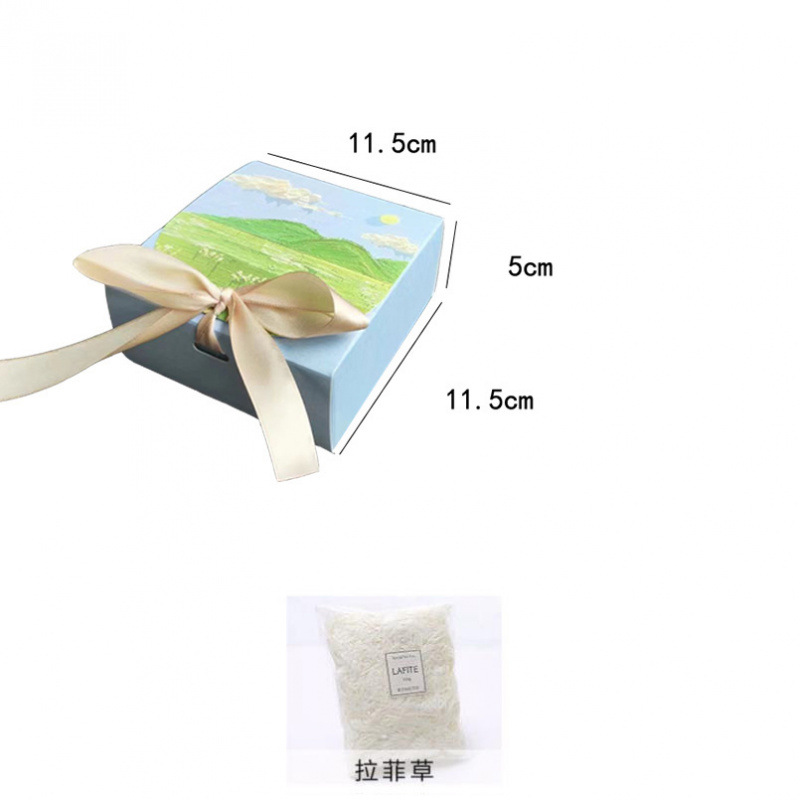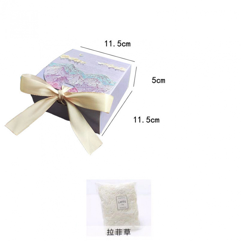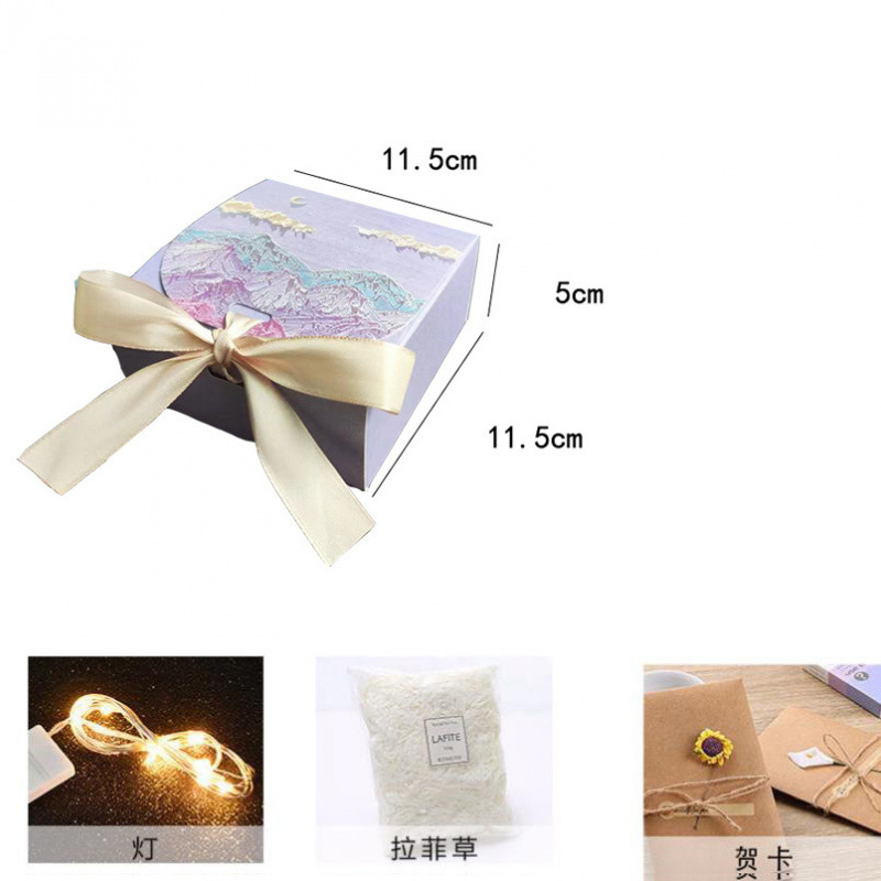 • 푸른 회색 달과 푸른 산 + 라피아 + 가벼운 끈 + 인사말 카드