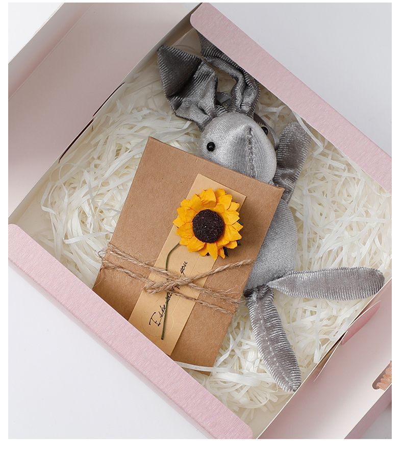 • 보라색 분홍색 꽃 바다 구름 + 풀 + 램프 + 인사말 카드 + 깃털 + 토끼