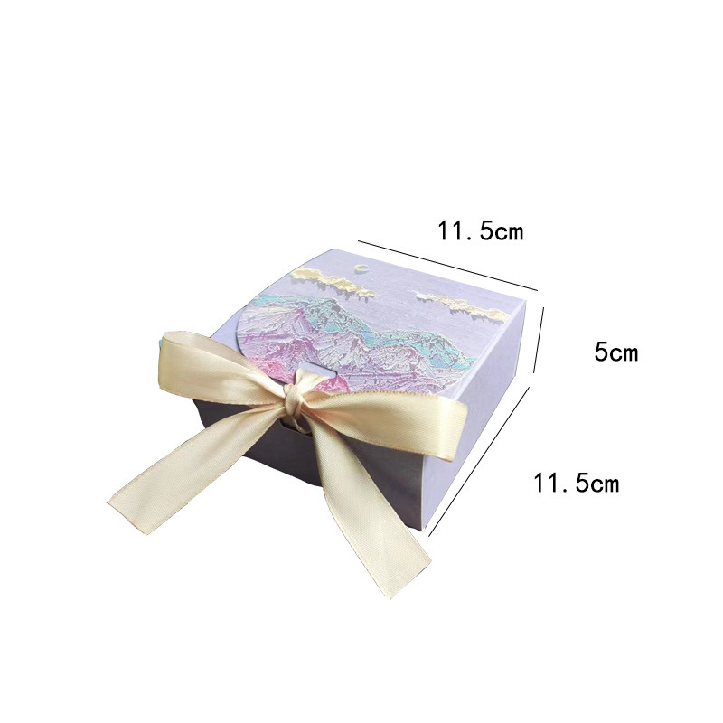 • 연한 보라색 - 산 위의 구름과 달 + 라피아 + 가벼운 끈 + 축하 카드