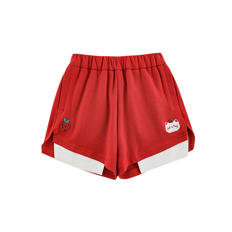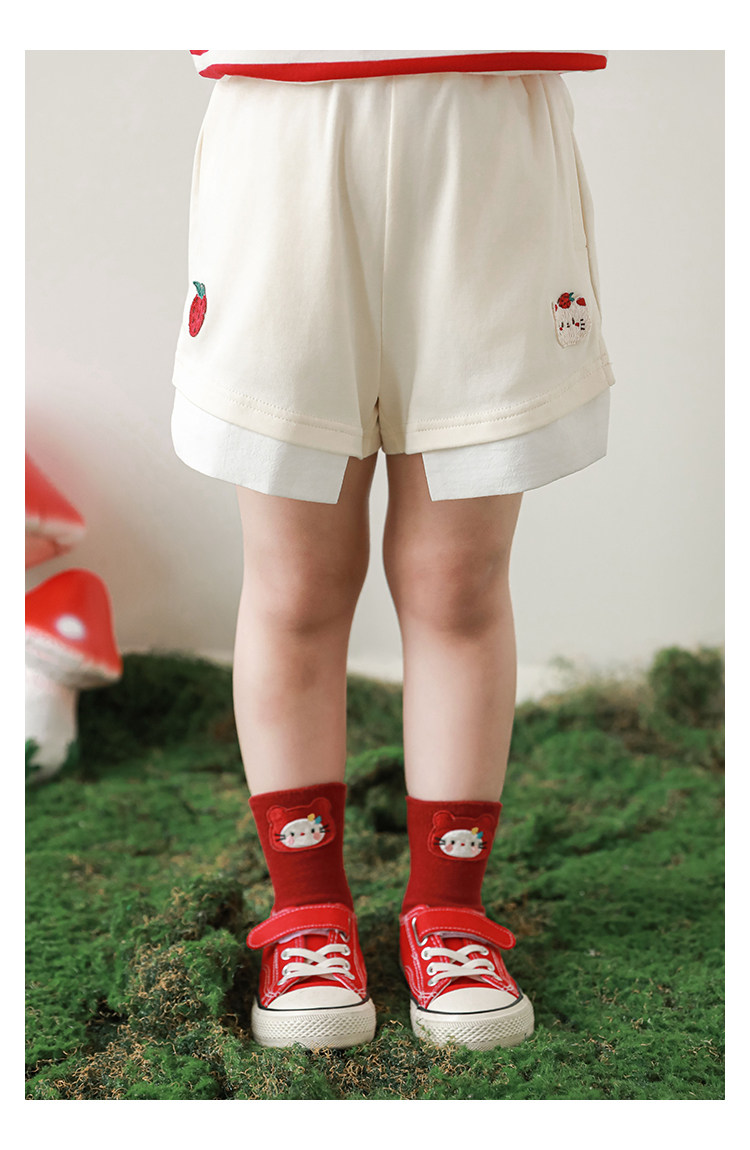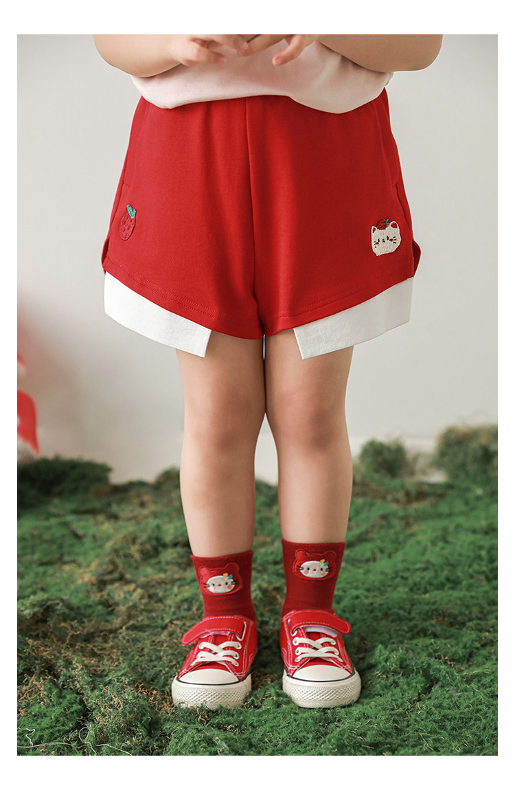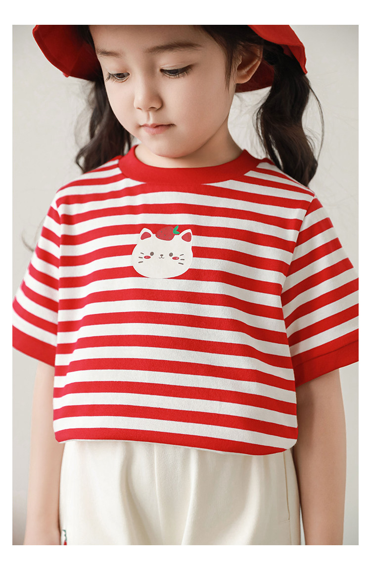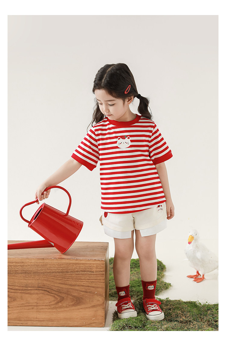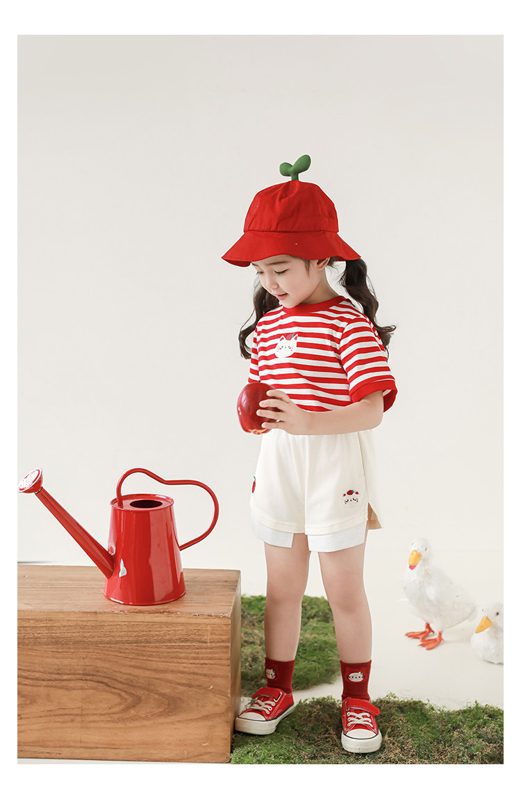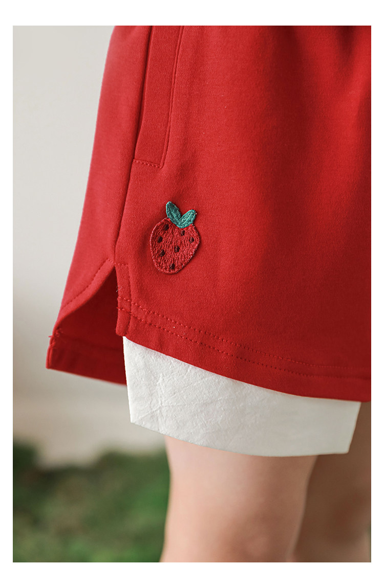 Wuri Boo 소녀 고양이 딸기 시리즈 2025 여름 시원한 느슨한 반팔 티셔츠 자수 반바지 세트